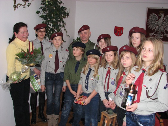 Na parę dni przed świętami Bożego Narodzenia harcerze ze szkół z terenu gminy przynieśli Betlejemskie Światełko Pokoju do naszej Gminy. Zjawili się również w budynku urzędu aby wręczyć ogień- symbol miłości, pokoju i nadziei, pracownikom samorządowym wraz z ciepłymi życzeniami świątecznymi.