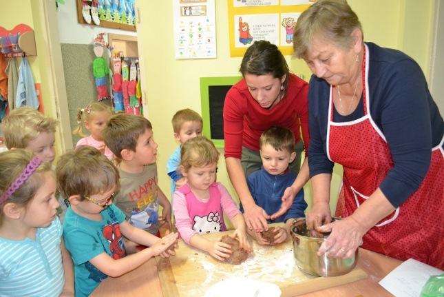 Atmosfera Świąt Bożego Narodzenia udzieliła się nam szczególnie w piątek 19.12.14r., kiedy to do przedszkola zostały zaproszone dwie panie należące do Koło Gospodyń Wiejskich: pani Genowefa Chmielowiec i pani Helena Blicharz. Jednocześnie były to babcie Malwinki i Zuzi.
