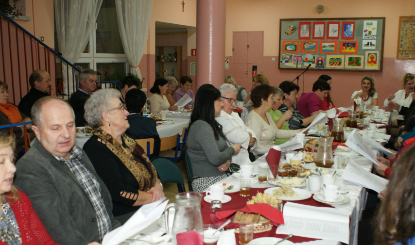 Maluchy z Przedszkola w Trześni swoim babciom i dziadkom przedstawiły piękny program artystyczny pod kierunkiem pań nauczycielek, w którym tańczyły i śpiewały. Dzieci na chwile przeniosły nas do Betlejem przedstawiając scenki z zżycia nowo narodzonego dzieciatka, pasterzy, mędrców oraz aniołów przeplatając kolędami i pastorałkami. Oczywiscie byly rowniez życzenia laurki i slodki poczestunek.