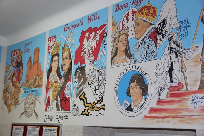 Ryszard Kubik namalował na korytarzu szkolnym obrazy z dziejów Polski. Karty przedstawiają ważne wydarzenia w dziejach Polski, są równocześnie dużą lekcją historii dla uczniów w przerwach lekcyjnych. Ściany innych sal również nabrały barw.