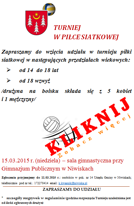 Kontakt w sprawie szkoleń: Urząd Gminy Niwiska - Łukasz Bryk tel. 172270419, pok. 18.