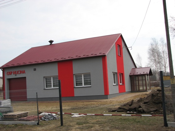 Dzięki prężnej pracy i wsparciu druhów z OSP Hucina, członków Rady Sołeckiej i mieszkańców wsi ( czyn społeczny przy realizacji zadania) wykonano częściowo w ramach funduszy sołeckich ogrodzenie wokół obiektu i dziś można podziwiać gruntownie odnowiony budynek.