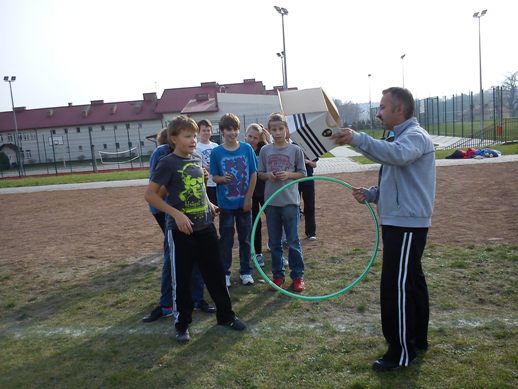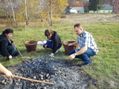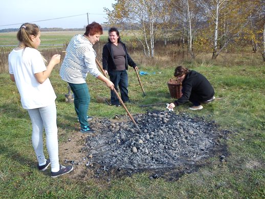 Dla poszczególnych grup przygotowano gry i zabawy przystosowane do ich możliwości. Wszyscy bawili się wspólnie – toczono dynię rękami, rodzice obierali ziemniaki na czas; rzucano ziemniakiem do celu itd., itd. W międzyczasie grupa rodziców pod kierownictwem jednego z nauczycieli piekła dla wszystkich w ognisku ziemniaki. Na koniec wszyscy uczestnicy zostali poczęstowani pysznymi pieczonymi ziemniakami, które zjedzono z wielkim apetytem, a dla uczniów rodzice przygotowali dodatkowo deser – galaretkę zakupioną u uczniów gimnazjum, wspierając tym samym ich akcję zbierania pieniędzy na wycieczkę. Pogoda dopisała, wszyscy dobrze się bawili i na pewno długo będą wspominać ten miły dzień. Cała impreza zakończyła się wzajemnym brudzeniem twarzy zwęglonymi skórkami z pieczonych ziemniaków.