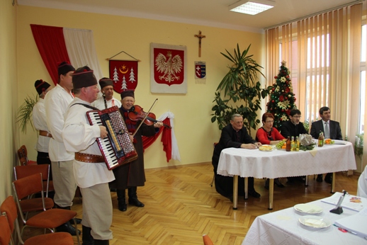 Część uroczystą sesji uświetniła Kapela Władysława Pogody z repertuarem kolędniczym. Sesję budżetową zakończyły życzenia noworoczne złożone przez Przewodniczącego Rady Gminy Wacława Pogodę. Podziękowania i życzenia złożyła także Wójt Gminy Elżbieta Wróbel. Podziękowania za współpracę przy realizacji budżetu w 2013 roku i realizacje przyjętych zadań na ten rok skierowała do radnych, sołtysów, kierowników jednostek organizacyjnych, dyrektorów szkół i pracowników urzędu gminy. Życzyła wszystkim zdrowia, radości i sukcesów w nadchodzącym roku.
