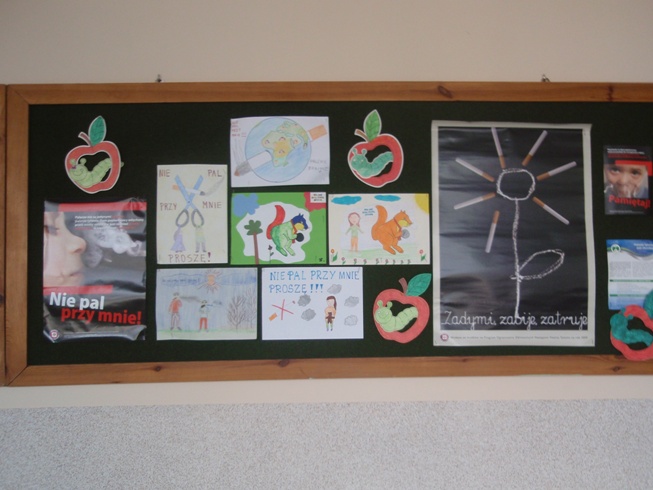 Uczestnicy programu przekazali rodzicom ulotki informujące o problemie ,,biernego" palenia wykonali również piktogramy i rymowanki w ramach konkursu szkolnego, za które otrzymali upominki ufundowane przez Stację Sanitarno - Epidemiologiczną w Kolbuszowej i Dyrektora Szkoły K. Piątkowską.