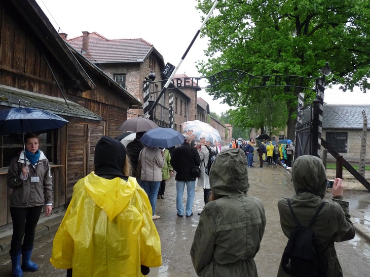 Drugim miejscem zwiedzania był niemiecki obóz koncentracyjny z czasów II wojny światowej - Auschwitz – Birkenau, miejsce męczeństwa i śmierci kilku milionów ludzi. Uczestnicy wycieczki przez ponad 3 godziny wsłuchiwali się w historię obozu i więźniów, szli ścieżkami, którymi przechodzili więźniowie. Z wielkim przejęciem oglądali zebrane w gablotach rzeczy osobiste osadzonych w obozie ludzi, zdjęcia tych, którzy poddawani byli różnym eksperymentom medycznym, komory gazowe, w których Niemcy unicestwili wiele istnień ludzkich. Ogromne wrażenie zrobiły na uczniach sterty ludzkich włosów