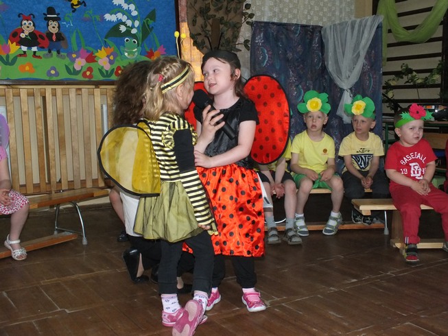 Na zakończenie uroczystości wszyscy zostali zaproszeni na słodki poczęstunek, po czym Rodzice z dziećmi udali się na plac przedszkolny i tam rozpoczęli wspólne zabawy taneczno–ruchowe przy muzyce z Pani Anna Marut – prowadzącą zajęcia gimnastyki korekcyjnej w naszym przedszkolu. Ponadto Pani Wójt Elżbieta Wróbel sprawiła wielką niespodziankę naszym przedszkolakom zamawiając specjalnie na naszą uroczystość nadmuchiwany zamek - zjeżdżalnię, za co składamy serdeczne podziękowania. Radości nie było końca, a wszystkie zabawy miały na celu zintegrowanie obecnych oraz przyszłych przedszkolaków, jak i ich Rodziców.