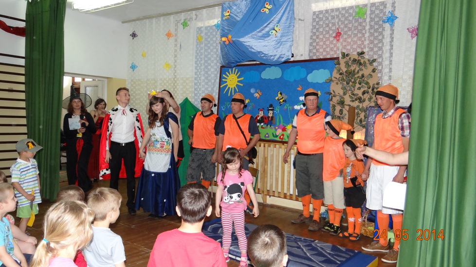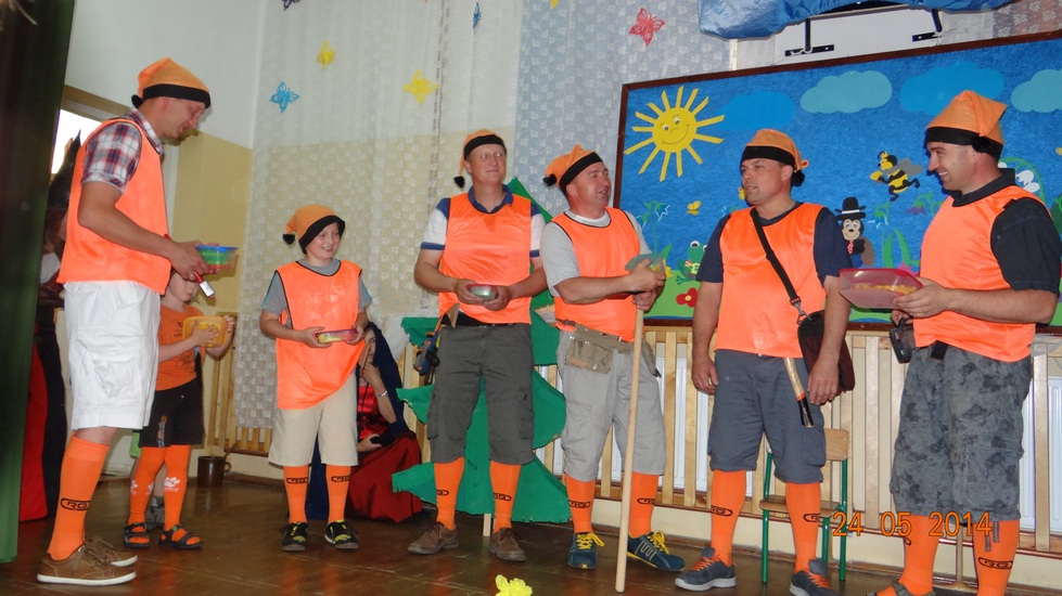 Druga część artystyczna to niespodzianka dla przedszkolaków jak i zebranych gości - występ rodziców i nauczycieli, którzy postanowili (tak jak obiecali po udanym wystawieniu „Jasełek”) zaprezentować swoje umiejętności aktorskie w przedstawieniu opartym na baśni pt. „Królewna Śnieżka i siedmiu krasnoludków”. Wszystkim serdecznie dziękujemy za poświęcony czas na próby oraz zaangażowanie. Mamy nadzieje, że występy z udziałem rodziców staną się tradycją w naszym przedszkolu.