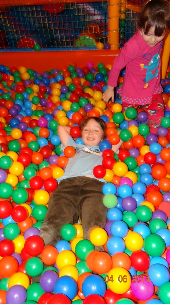 Następnie przedszkolaki udały się do „Kulkolandu”, gdzie czas upłyną im pod znakiem wspaniałej zabawy. Dzieci bawiły się w wydzielonym kąciku zabaw wyposażonym w zabawki i sprzęty, dostosowane specjalnie do ich potrzeb. Na otwartej przestrzeni chłopcy i dziewczynki chętnie korzystali z samochodzików, wspinali się na drabinki, skakali na trampolinie, zjeżdżali z nadmuchiwanej zjeżdżalni. Zabawa była wyśmienita. Zmęczone, ale zadowolone dzieci wróciły do przedszkola na smaczny obiad i deser.