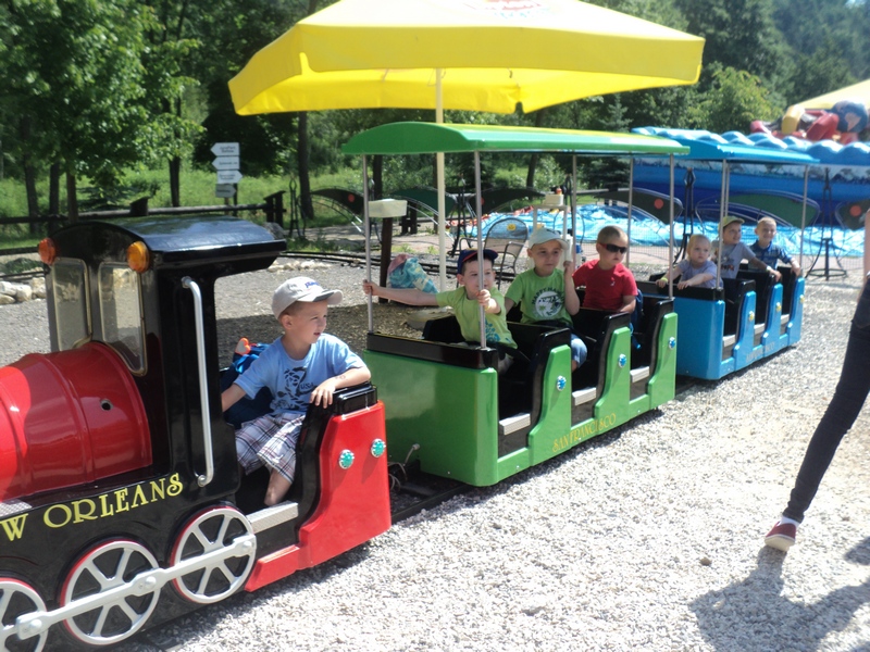 W słoneczny, sobotni poranek, 7 czerwca dzieci z Punktu Przedszkolnego PROMYCZEK wraz z rodzicami, panią dyrektor i wychowawczyniami wyruszyły na wycieczkę do Bałtowa. Po 2,5 godzinnej podróży wesoły autobus dojechał do celu. W oczekiwaniu na zakup biletów dzieci miały okazję poszaleć na dużym i ciekawie urządzonym placu zabaw.