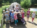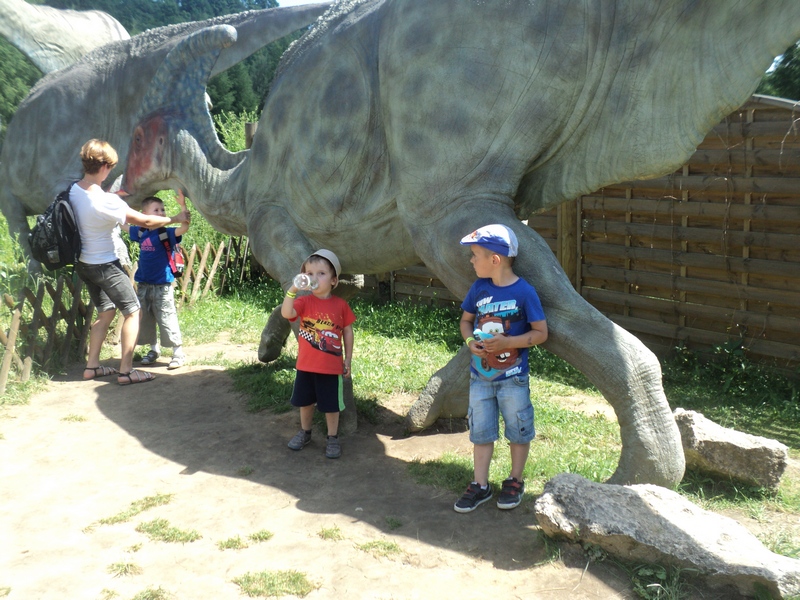 Jeździły na karuzelach, samochodzikach elektrycznych , pływały po stawku, jeździły konno. Szczęśliwe, ale nieco już zmęczone i głodne poszły na obiad. Tam zregenerowały siły i udały się na dalsze zwiedzanie Parku Jurajskiego. Dzieci mogły tu zobaczyć naturalnej wielkości dinozaury, o których opowiadał miły pan przewodnik. Ostatnim etapem wycieczki była wizyta w Prehistorycznym Oceanarium. Dzięki nowoczesnej technologii komputerowej, dzieci zobaczyły jak wyglądał podwodny świat przed milionami lat. Mogły obserwować ogromne, morskie potwory, które wydawały się prawdziwe i budziły wielkie emocje. Niestety, nadszedł czas pożegnania z Krainą Dinozaurów, ostatnia chwila na lody, zakup pamiątek i czas wracać do domu. Mali odkrywcy do Huciska wrócili około godziny 17.30, zmęczeni podróżą w ten upalny dzień, ale bardzo zadowoleni. Wycieczka ta, na długo pozostanie w pamięci jej uczestników , a o tych cudownie spędzonych chwilach przypominać będą pamiątki zakupione w Bałtowie.
