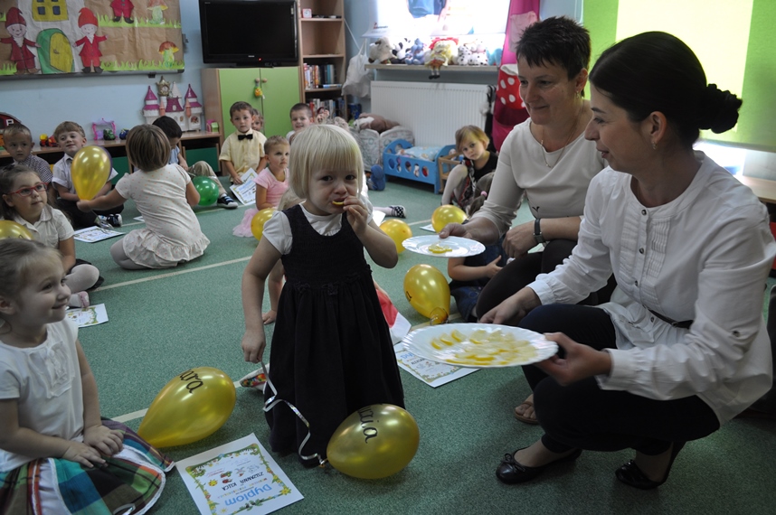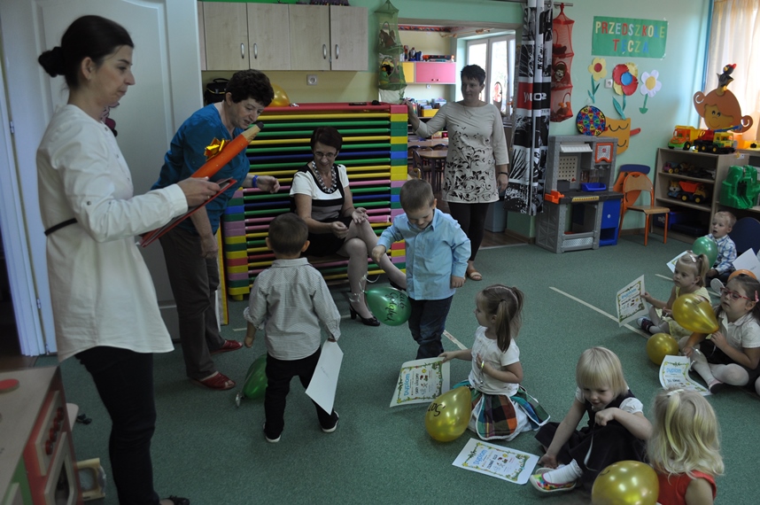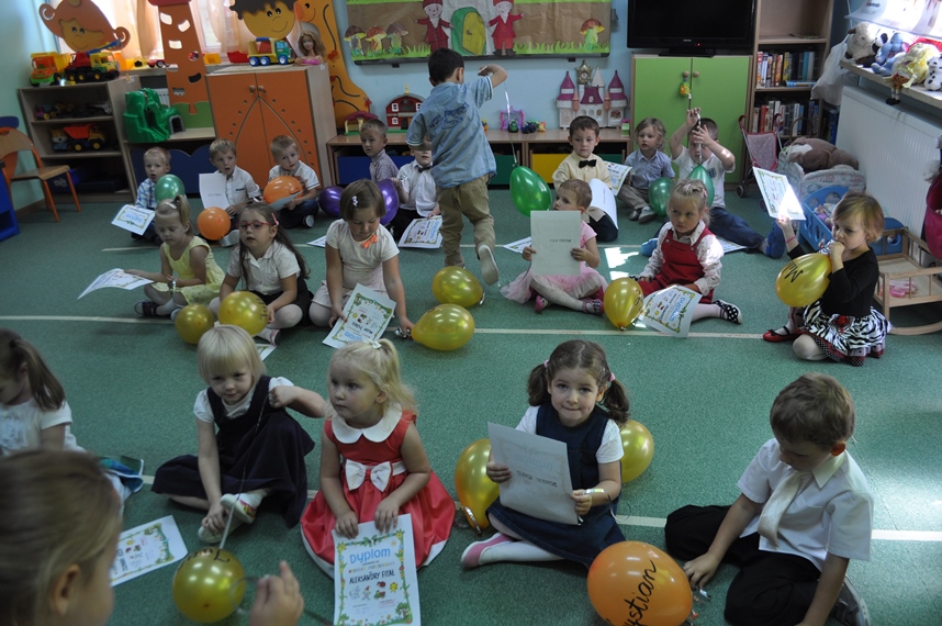 Dzieci zaprezentowały piosenki,wiersze i tance ,których nauczyły sie do tej pory .W dalszej części dzieci złożyły uroczyste ślubowanie w obecności Pani Wójt ,a Pani Ewa Kurda za pomocą zaczarowanego ołówka dokonała pasowanie . Na pamiątkę tej ważnej chwili każde dziecko otrzymało dyplom i upominek . Po części oficjalnej Pani Agnieszka Rguła zaprosiła dzieci do wspólnego tańca i zabawy . Całość uroczystość przygotowały nauczycielki: Ewa Kurda
