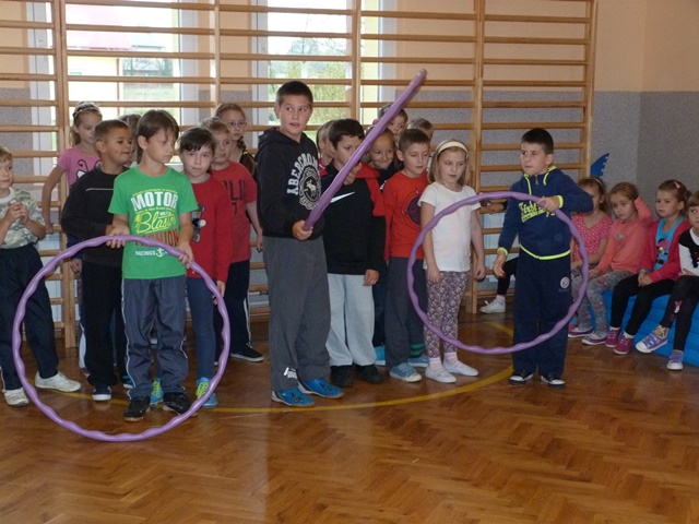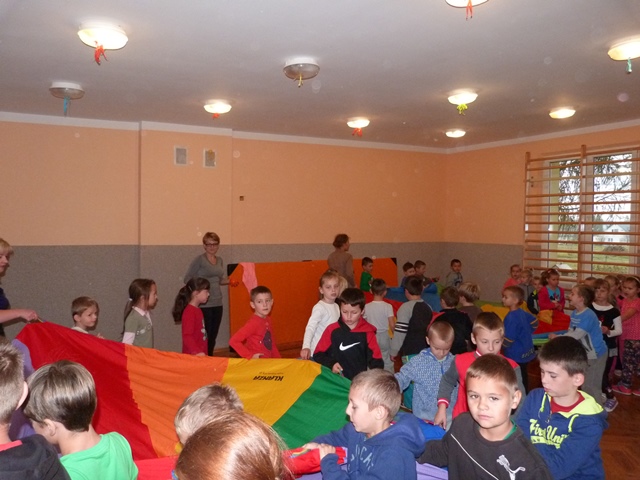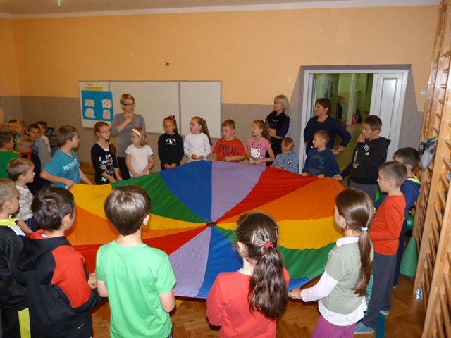 W ramach integracji międzyszkolnej 20 października 2014 roku do Szkoły Podstawowej w Hucinie zawitali uczniowie klas 0-III ze Szkoły Podstawowej im. Stefana Olszowego w Kosowach pod opieką p. Marty Czerw i p. Krystyny Paszkiewicz. Już od samego początku spotkania wszyscy świetnie się bawili, wspólnie tańcząc i wykonując śmieszne układy taneczne. Jednak największe emocje wzbudziły konkurencje sportowe, w których dzieci wykazywały się sprawnością fizyczną. Cała szkoła wypełniła się śmiechem i okrzykami radości, szczególnie przy zabawie z chustami klanza.