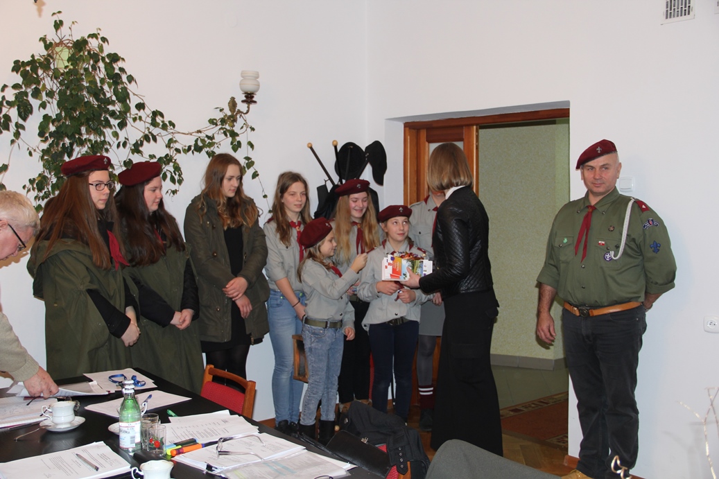 Druhowie z Hufca Związku Harcerstwa Polskiego z terenu Gminy Niwiska przekazali wójtowi gminy Elżbiecie Wróbel Betlejemskie Światło Pokoju. W tym roku światełko przekazywane jest pod hasłem „Pokaż dobro!”