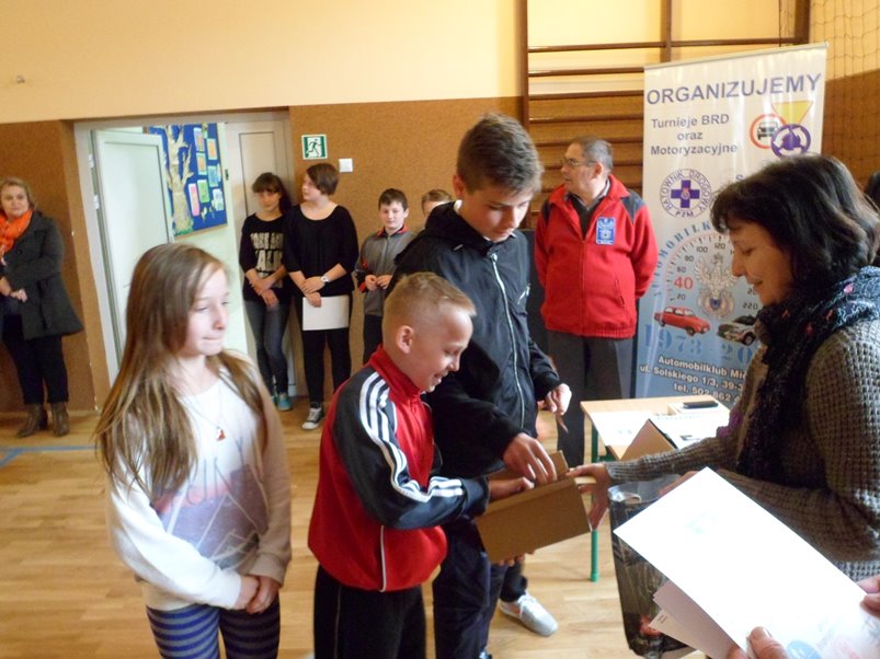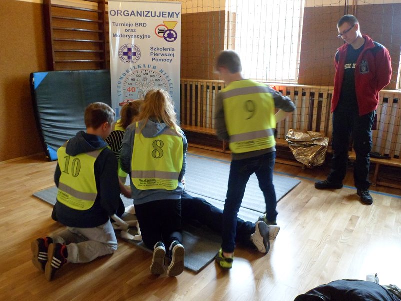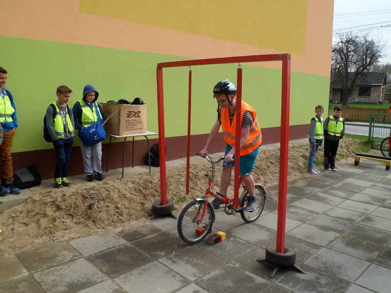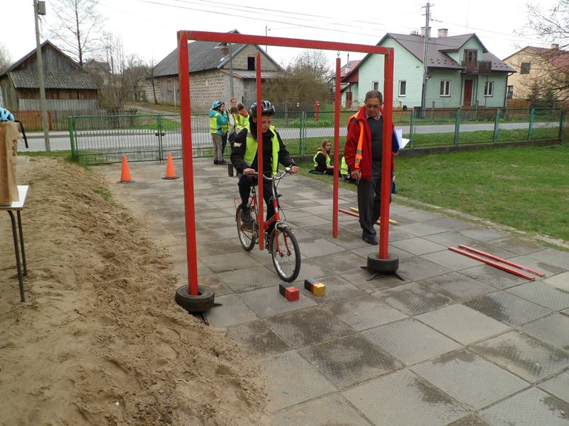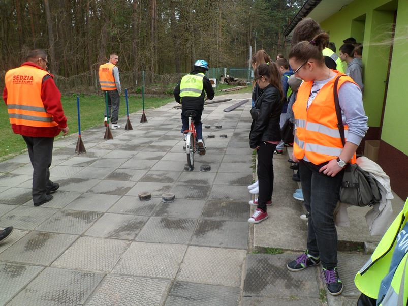 testu sprawdzającego wiedzę z zakresu przepisów ruchu drogowego, oddzielnie rozwiązując test z umiejętności poruszania się po skrzyżowaniach, jazdy rowerem po torze sprawnościowym oraz umiejętności z zakresu udzielania pierwszej pomocy przedmedycznej.