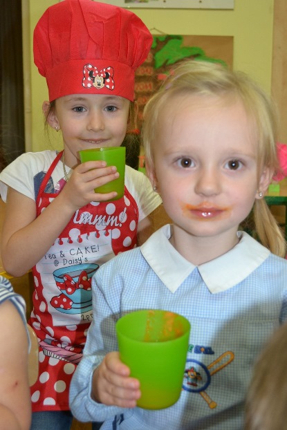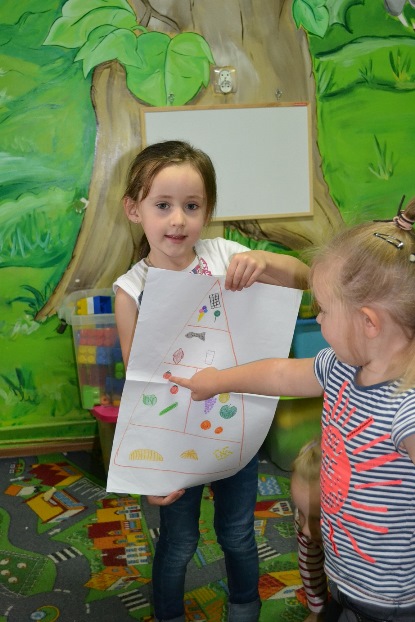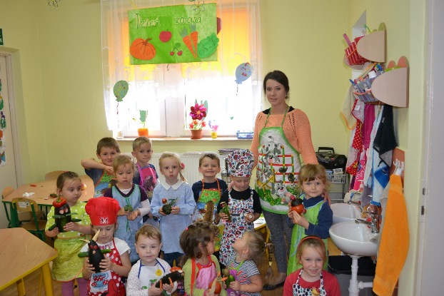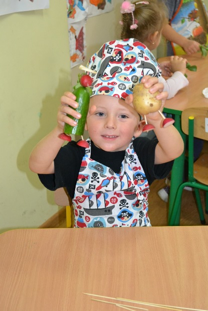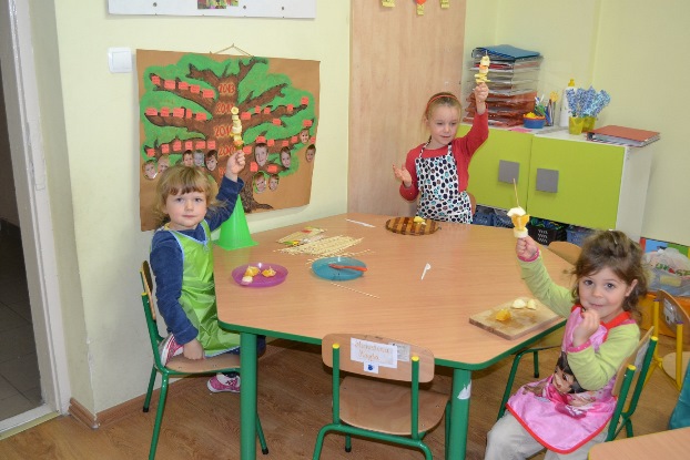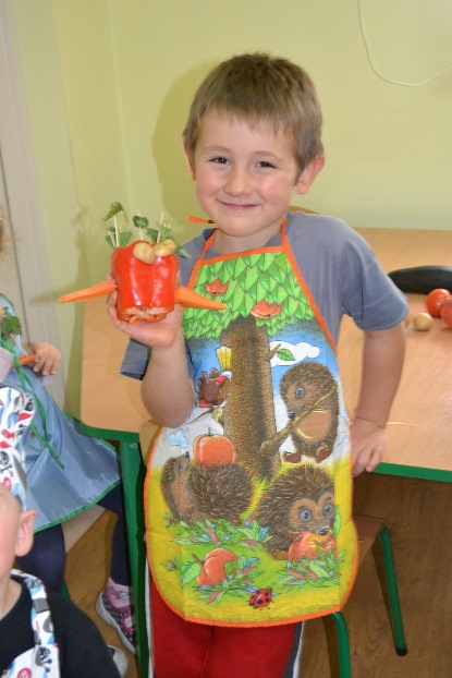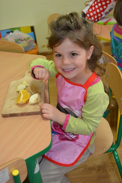 We wtorek 13.10 br. w naszym przedszkolu obchodziliśmy „Dzień zdrowia”. Dzieci poprzez zapoznanie się z piramidą żywienia przypomniały sobie zasady właściwego odżywiania się. Celem zajęć było zachęcenie dzieci do jedzenia owoców i warzyw oraz uświadomienie im, jak bardzo są ważne dla naszego zdrowia. Motywem przewodnim w tym dniu były owoce i warzywa. W ramach zajęć przedszkolaki tworzyły szaszłyki z owoców oraz ludziki z warzyw. Atrakcją zajęć okazało się przygotowanie soku marchewkowo- jabłkowego, który bardzo szybko znikł z kubeczków dzieci. Dzień zdrowia w naszym przedszkolu był pełen wrażeń i pozytywnych emocji dzieci.