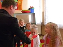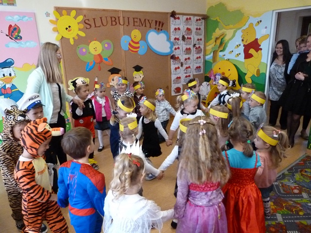 Następnie pani prezes Stowarzyszenia „ Wieś przyjazna dzieciom” – Agnieszka Toś, w obecności rodziców dzieci, dokonała uroczystego pasowania najmłodszych. Każde dziecko dostało pamiątkowy dyplom oraz upominki. Po poczęstunku dla wszystkich gości oraz przedszkolaków rozpoczęła się zabawa. Dzieci tańczyły, bawiły się w różne zabawy, modelowały kolorowe balony, oglądały bajkę. O godz. 11 rozpoczęła się druga ważna część obchodów - pasowanie uczniów kl. "0". Oprócz występów przed rodzicami, czekały ich specjalne zadania - starszak musi być już samodzielny, dlatego jedno z nich dotyczyło własnoręcznego przygotowania kanapki, inne sprawdzało odwagę i zakładało zjedzenie kawałka cytryny bez skrzywienia się. Wszyscy uczniowie oddziału przedszkolnego zdali test wzorowo. Nareszcie pan dyrektor Paweł Świder mógł uroczyście pasować "zerówkowiczów" na uczniów Oddziału Przedszkolnego, na znak czego otrzymali odznaki zerówkowicza, pamiątkowe dyplomy oraz upominki. Wszystkich zaproszonych gości oraz dzieci czekał poczęstunek. Po dniu pełnym atrakcji nastał w końcu czas pożegnania i... zaproszenie pasowanych uczniów do dalszej pracy i zabawy w przedszkolu i szkole.