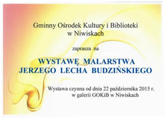 Jerzy Lech Budziński, Niwiszczanin z wyboru, z wykształcenia elektryk, artysta-amator, miłośnik sztuki, urodzony 22.09.1946 r. w Dzierżoniowie. W latach 1974-1989 związany był z Warszawą – tam spędził swoją młodość oraz część dorosłego życia. Pochodził z rodziny o zamiłowaniach artystycznych – babcia uczyła go gry na fortepianie oraz gitarze. Od dzieciństwa przejawiał zdolności plastyczne, co zaowocowało współprowadzeniem (wraz z teściami) pracowni rękodzieła artystycznego, gdzie wytwarzano m. in. kilimy, makramy, różne ozdoby sprzedawane w sklepach Cepelii na terenie całej Polski. W tym okresie razem z teściową wykonał rzeźby Drogi Krzyżowej oraz rzeźby do Ołtarza Głównego Wojskowego Kościoła Katolickiego w Warszawie. Przełom lat 80-tych i 90-tych przyniósł kryzys gospodarczy, śmierć żony, co przyczyniło się do upadku rodzinnej firmy. Efektem problemów finansowych i chęci odtworzenia rodzinnego biznesu była emigracja Jerzego Budzińskiego do Wiednia. Tam poznał swoją drugą żonę, która pochodziła z Niwisk. Wolny czas wspólnie spędzali na niwiskiej ziemi, którą pokochał i którą nazywał „sanatorium swojej duszy”. Zaczął malować pod koniec 2008 r. – marzył o wernisażu swoich prac, koniecznie w Niwiskach. Niestety, nie dane mu było spełnić swoje marzenie – zmarł po ciężkiej chorobie 18 września 2015 r. Zgodnie ze swoim życzeniem spoczywa na niwiskim cmentarzu. Zostawił po sobie obrazy, stanowiące cenną pamiątkę dla rodziny, które można obejrzeć na wystawie w Gminnym Ośrodku Kultury i Biblioteki w Niwiskach.