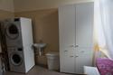 wydzielone miejsce na pralkę i miejsce do prasowania,