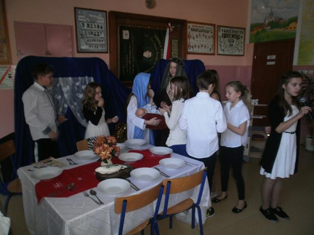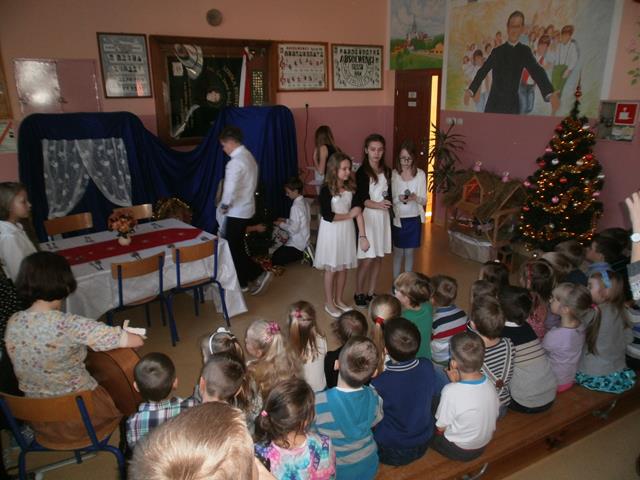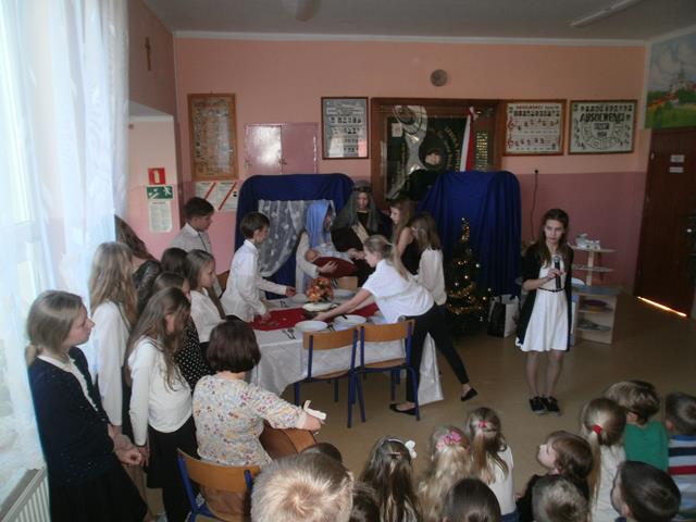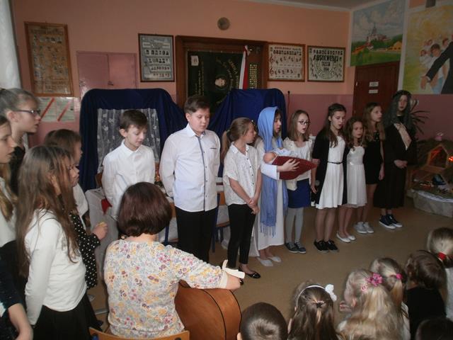 Czas Świąt Bożego Narodzenia to czas radości, spotkań z bliskimi i znajomymi oraz czas wspólnego kolędowania. W tym roku w Szkole Podstawowej w Trześni również wpisaliśmy w naszą polska tradycję wspólnego kolędowania. Po opłatkach klasowych wszyscy uczniowie, nauczyciele oraz przybyli rodzice spotkali się aby wspólnie obejrzeć przedstawienie uczniów naszej Szkoły. Po przedstawieniu rozpoczęło się wspólne śpiewanie kolęd. Pod muzycznym przewodnictwem pani Agnieszki Jemioło uczniowie wraz z nauczycielami i rodzicami dali wspaniały koncert kolędniczy.