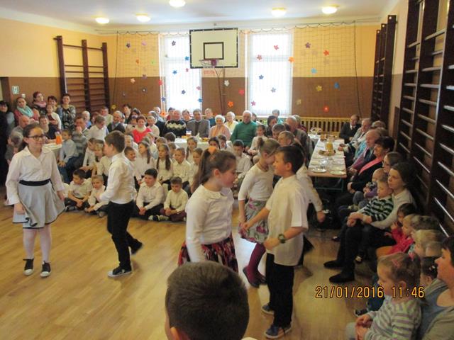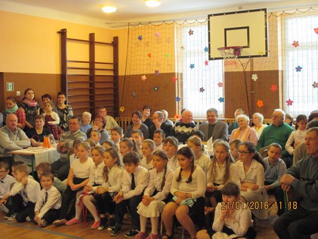 Dnia 21 stycznia 2016r. sala gimnastyczna Szkoły Podstawowej w Przyłęku wypełniła się wyjątkowymi gośćmi. Przyszli bowiem zaproszeni przez swoich wnuków Babcie i Dziadkowie, aby wspólnie świętować i bawić się w tym uroczystym dniu. Uczniowie każdej klasy pod opieką wychowawców przygotowali występ, w który włożyli wiele starań i zaangażowania, a przede wszystkim wdzięczność i szacunek za miłość, jaką są otaczani. Młodsze dzieci przedstawiły szereg serdecznych wierszy i piosenek, starsze zachwycały tańcem i grą na różnych instrumentach, jeszcze inne zabawiały humorystycznymi scenkami. Za wszystko otrzymywały brawa od wzruszonych Babć i Dziadków oraz spojrzenia pełne łez szczęścia i miłości. Po zakończonej części artystycznej dyrektor szkoły- p. Joanna Trelka – złożyła wszystkim przybyłym na uroczystość serdeczne życzenia. Dzieci wróciły do domów , a zaproszeni goście świętowali jeszcze przy kawce i ciasteczku przygotowanym przez Radę Rodziców.
