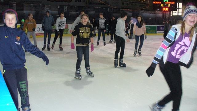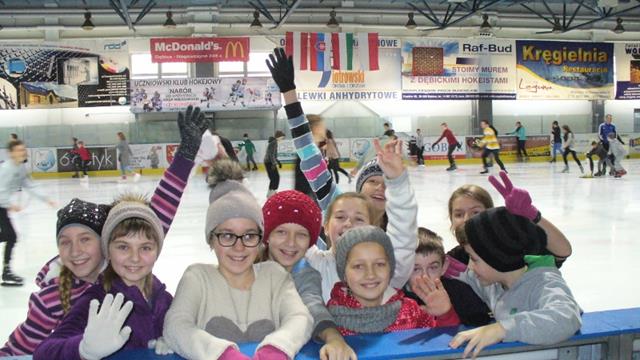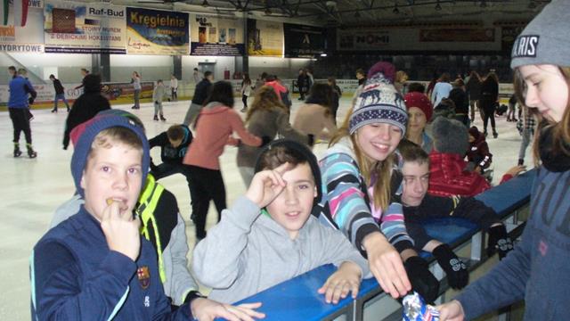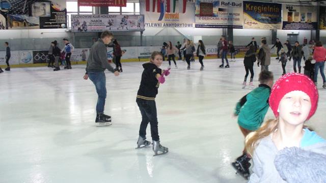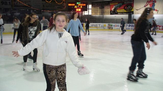 Uczniowie chętnie poddali się szaleństwom na łyżwach. Z ogromną determinacją starali się wygrać z grawitacją na lodowisku. Prawie każdy zaliczył upadek, a niektórzy częściej leżeli na lodzie niż przyjmowali postawę pionową. Z czasem było jednak coraz lepiej i żal było schodzić z lodowej tafli.