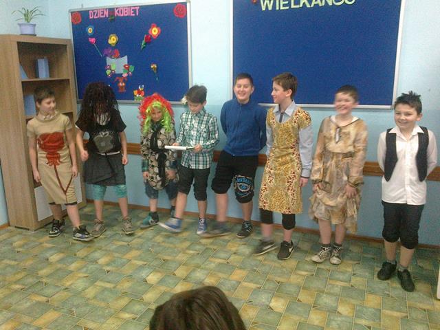Na 2 godzinie lekcyjnej odbyło się przedstawienie z okazji Dnia Kobiet. Mogliśmy podziwiać humorystyczne przedstawienie. Uczestniczkami byli sami we własnej osobie chłopcy, przebrani za kobiety. Widowisko to było udoskonalone utworami muzycznymi. Na sam koniec złożone zostały życzenia wszystkim kobietom ze Szkoły Podstawowej w Kosowach, a uczniowie wręczyli śliczne goździki.
