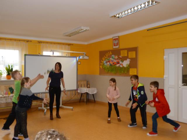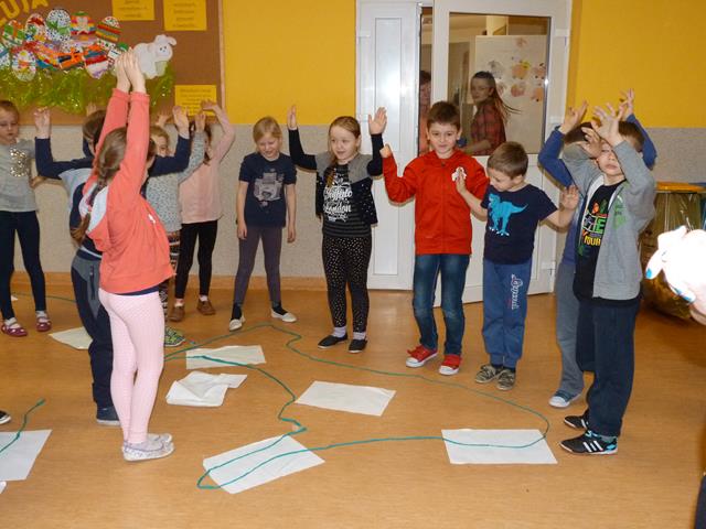 Po krótkiej prezentacji postaci oraz sposobu celebrowania święta przez Irlandczyków, uczniowie zatańczyli irlandzki taniec. Następnie przyszedł czas na zabawy. Dzieci konkurowały w zbieraniu największej ilości "skarbu Leprechaun", najdłuższym w czasie utrzymania piórka w powietrzu oraz nawiązując do wierzeń, że Św. Patryk wypędził węże z Irlandii, uczniowie starali się wykonać najdłuższego węża z plasteliny.