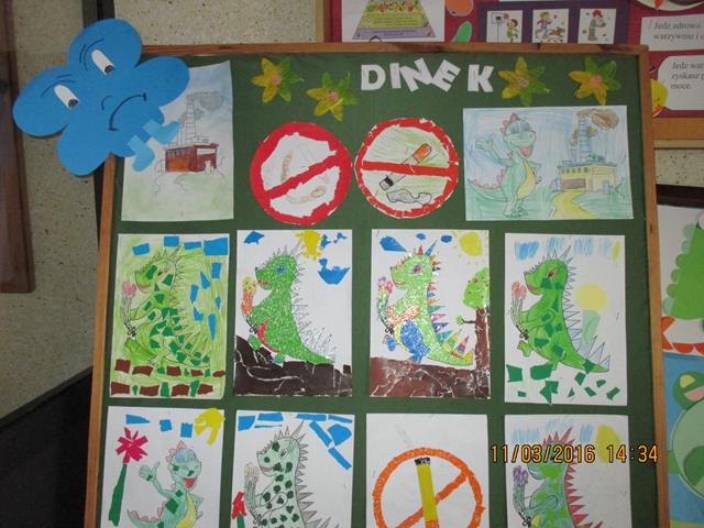 W ramach realizacji programu odbyły się różne zajęcia edukacyjne. Dzięki nim dzieci zwiększyły wiedzę dotyczącą szkodliwości dymu: obserwowały źródła dymu, projektowały znaczek „Nie pal przy mnie”, rysowały z skąd pochodzi dym oraz zapoznały się z postacią Dinka. Również wykorzystano literaturę dla dzieci informującą o skutkach dymu. Zostały zapoznane z opowiadaniami „Smog i smok” K.Kozłowski, „Piotruś i powietrze” L.J.Kern, „O kominie który, przestał dymić” - ilustrowane obrazkami, „Jak wiosna ratowała przyjaciół” – informująca o zapobieganiu zanieczyszczeń. Przedszkolaki bardzo chętnie uczestniczyły w zajęciach. Proponowane zabawy ruchowe, tematyczne oraz konstruktywnie zainspirowały ich wyobraźnie.