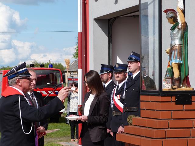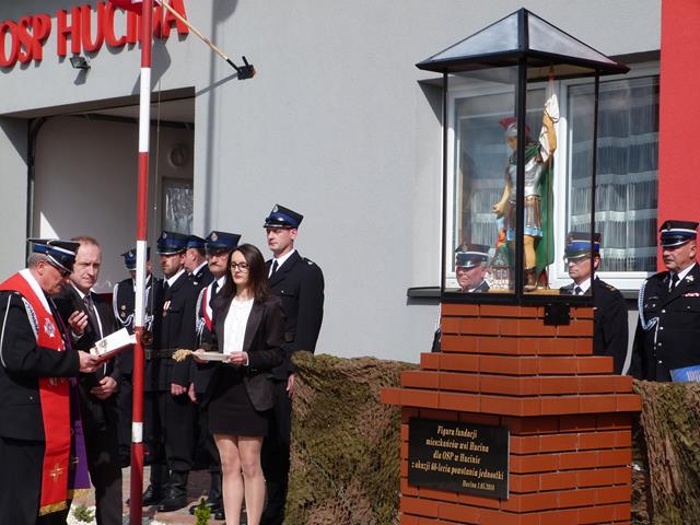 1 maja 2016r. Gminne obchody Dnia Strażaka, połączone z jubileuszem i poświęceniem figurki św. Floriana - patrona strażaków obchodzono w Hucinie. Uroczystość rozpoczęła się mszą św. w intencji strażaków i ich rodzin odprawioną przez Kapelana Strażaków powiatu kolbuszowskiego - księdza prałata Wiesława Augustyna i proboszcza parafii Niwiska Kazimierza Franczaka. Główne uroczystości odbyły na placu obok remizy OSP Hucina. Po złożeniu meldunku przez kpt. Adama Haptasia – Komendanta Gminnego ZOSP RP w Niwiskach i wciągnięciu flagi na maszt druh Adam Chlebowski w imieniu gospodarza uroczystości Zarządu OSP w Hucinie przywitał przybyłych gości. W uroczystości udział wzięły delegacje wraz z pocztami sztandarowymi wszystkich jednostek OSP z terenu gminy Niwiska oraz zaproszeni goście w osobach: Józef Kardyś – Starosta Kolbuszowski, bryg Krzysztof Samojeden- przedstawiciel Komendanta Powiatowego Państwowej Straży Pożarnej w Kolbuszowej, kpt Adam Haptaś Komendant Gminny Związku OSP RP, Ryszard Skowron - Prezes Zarządu Oddziału Powiatowego Związku Ochotniczych Straży Pożarnych RP w Kolbuszowej, Stanisław Kosiorowski – Prezes Honorowy Zarządu Oddziału Powiatowego Związku Ochotniczych Straży Pożarnych RP w Kolbuszowej, Józef Prymon i Zbigniew Ofiara – Radni Powiatu Kolbuszowskiego, Robert Róg – Przewodniczący Rady Gminy Niwiska, Elżbieta Wróbel – Wójt Gminy Niwiska, Jolanta Marut –Sekretarz Gminy Niwiska, Michał Strzępa – Prezes ZOG ZOSP RP w Niwiskach, dh Grażyna Kasza Inspektor ds. ochrony p-poż. i jednocześnie członek ZOG ZOSP RP w Niwiskach, druhowie Prezesi i Naczelnicy, Ochotniczych Straży Pożarnych Gminy Niwiska, kierownicy jednostek organizacyjnych gminy i instytucji, mieszkańcy wsi Hucina. Poświęcenia figurki św. Floriana dokonał Kapelan Strażaków powiatu kolbuszowskiego - księdz prałat Wiesław Augustyn.