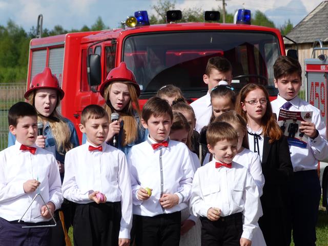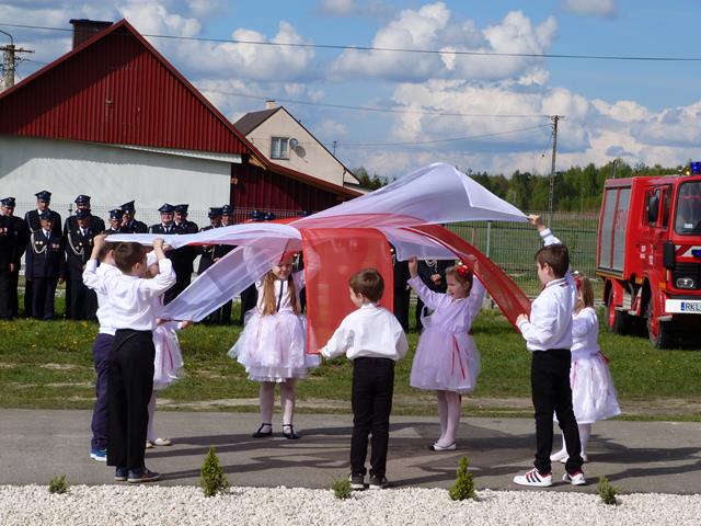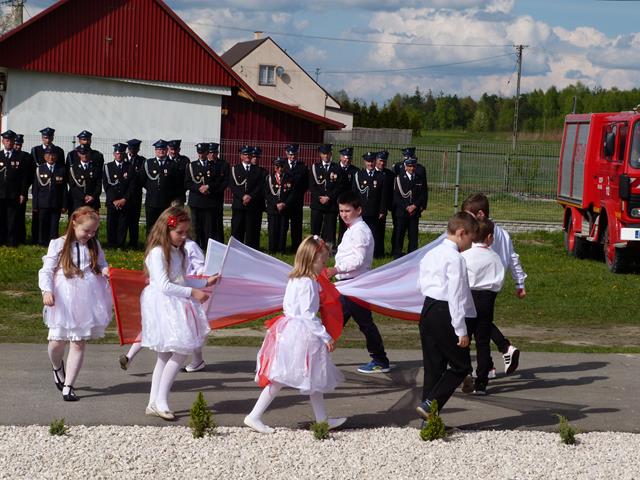 Historię OSP w Hucinie przedstawił prezes dh Roman Strzępka. W humorystycznnej inscenizacji „Pali się…” i montażu słowno - muzycznym związanym ze świętem flagi wystąpili uczniowie SP Hucina.