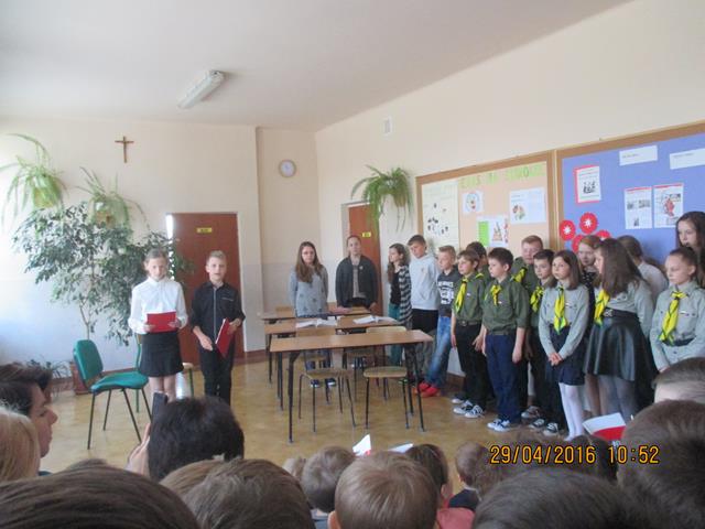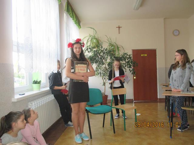 Jak mawia stare przysłowie: „jeśli Ci powiem – zapomnisz, jeśli pokażę – zapamiętasz, jeśli wytłumaczę – zrozumiesz”. Dlatego też 29 kwietnia 2016r. w Szkole Podstawowej w Siedlance cała szkolna społeczność uczestniczyła w ,,żywej ‘’lekcji historii. W tym dniu odbyła się uroczysta akademia z okazji 225 Rocznicy Uchwalenia Konstytucji. Uczniowie klasy VI przedstawili montaż słowno- muzyczny o tematyce patriotycznej poświęconej czasom, w których powstała tak ważna ustawa regulująca ustrój prawny Rzeczpospolitej. Przedstawienie w formie lekcji historii, łączyła postać „Małej Konstytucji”, która przypominała wydarzenia z 1791r. Bardzo doniosłym akcentem akademii był utwór „ Rota” śpiewany w postawie stojącej, wprowadzający widzów w atmosferę tych historycznych wydarzeń. Dowodem na to był spontaniczny powiew chorągiewek naszych milusińskich. Na zakończenie uroczystości wszyscy wspólnie odśpiewali ,,Witaj majowa jutrzenko”.