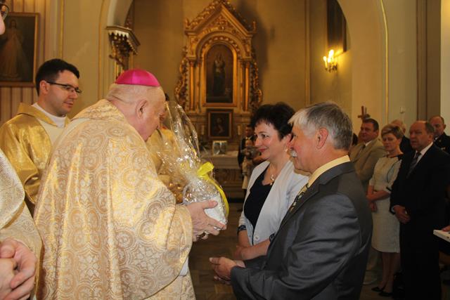 Poseł na Sejm RP Zbigniew Chmielowiec, Starosta Powiatu Kolbuszowskiego Józef Kardyś przedstawiciele władz gminnych, przedstawiciele grup parafialnych i poszczególnych sołectw złożyli Czcigodnym Jubilatom najserdeczniejsze życzenia w imieniu, których głos zabrała wójt Gminy Niwiska Elżbieta Wróbel :