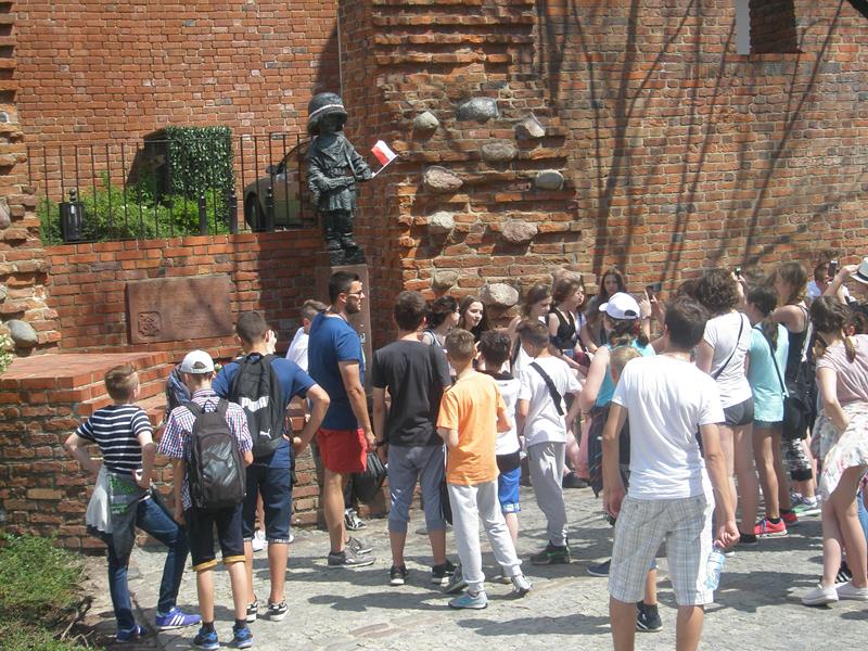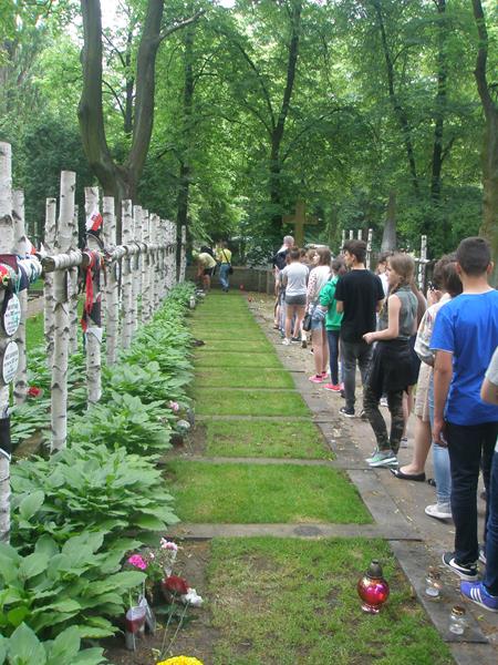 Drugi dzień rozpoczął się od wizyty na powązkowskim Cmentarzu Wojskowym, gdzie najważniejszym punktem było złożenie kwiatów i zapalenie znicza pamięci na grobie Janka Bytnara. Uczniowie mieli też możliwość złożenia hołdu żołnierzom poległym w różnych akcjach wyzwoleńczych na przestrzeni wielu lat oraz innym wybitnym i znanym Polakom, pochowanym na tym cmentarzu. Zatrzymano się również przy pomniku i grobach ofiar katastrofy smoleńskiej z 2010 roku. Po tej bardzo refleksyjnej wizycie udano się do Pałacu Kultury, gdzie wjechano windą na najwyższe piętro z tarasem widokowym, aby poobserwować panoramę Warszawy.