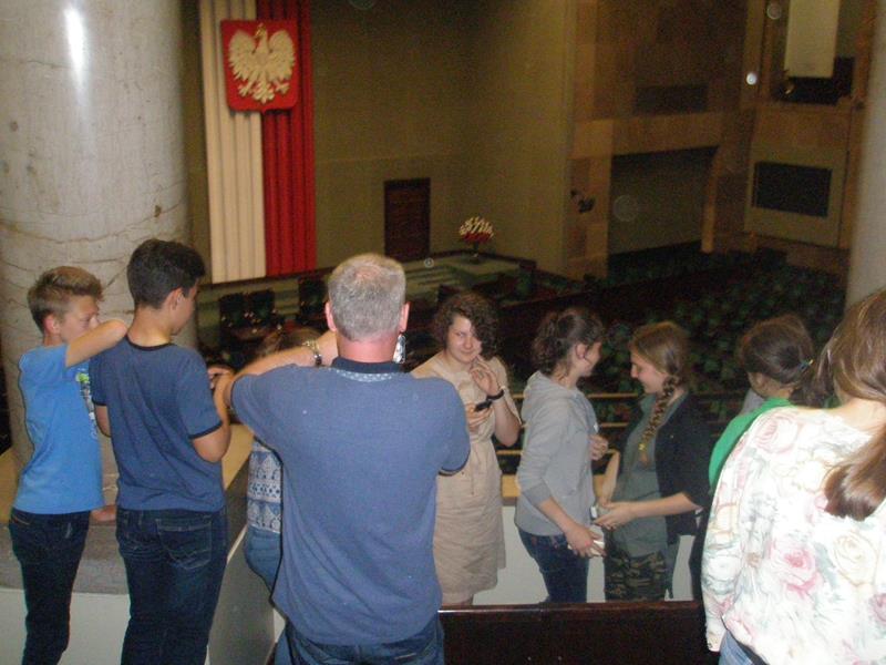Po posiłku zjedzonym w Złotych Trasach (gdzie atrakcją okazało się spotkanie znanego aktora grającego w serialu „M jak miłość”) przemieszczono się autokarem pod budynek Sejmu. Po dopełnieniu wszystkich formalności cała grupa wycieczkowiczów miała możliwość spacerowania po sejmowych korytarzach i zasiadania w ławach dla gości na sali obrad. Przewodnik zapoznał również zwiedzających z historią oraz ciekawostkami dotyczącymi tej instytucji.