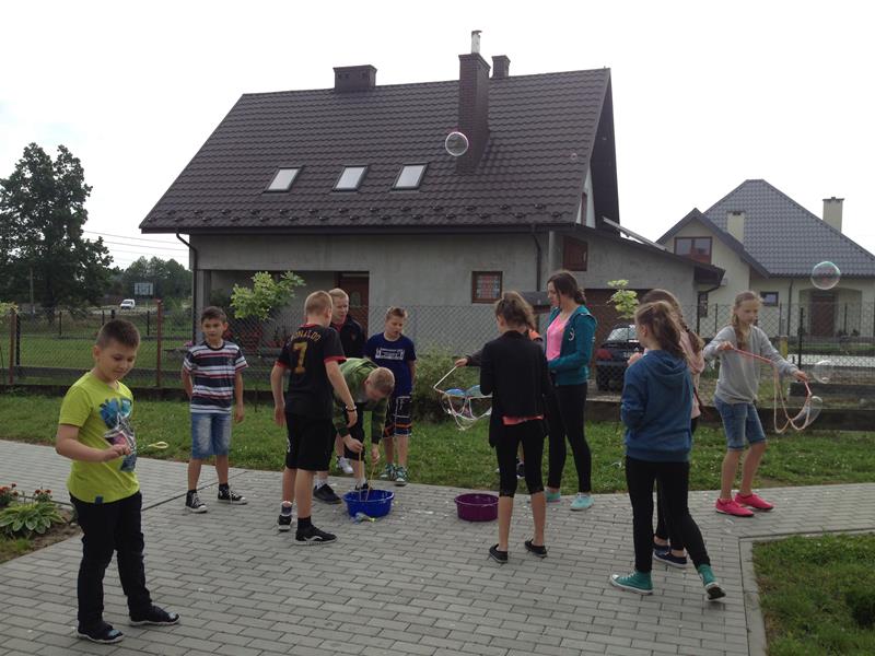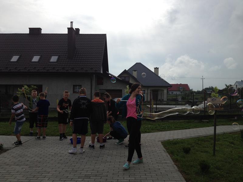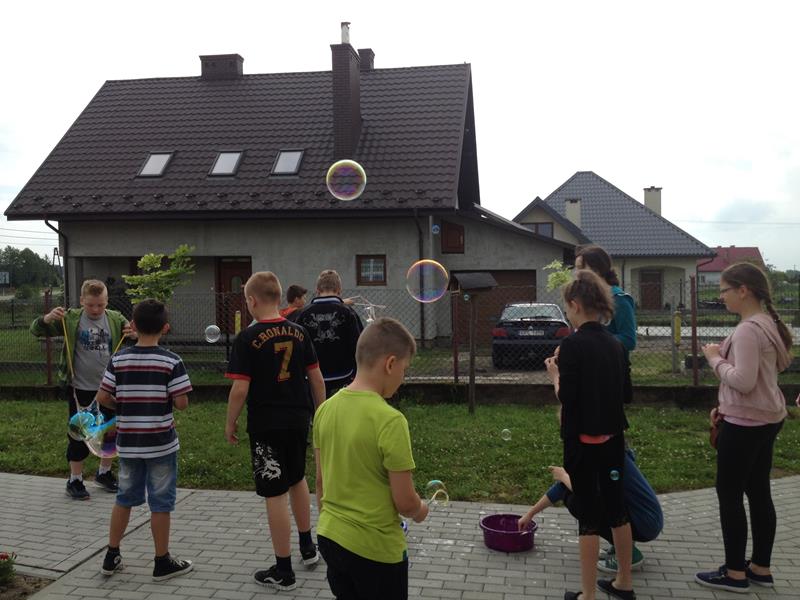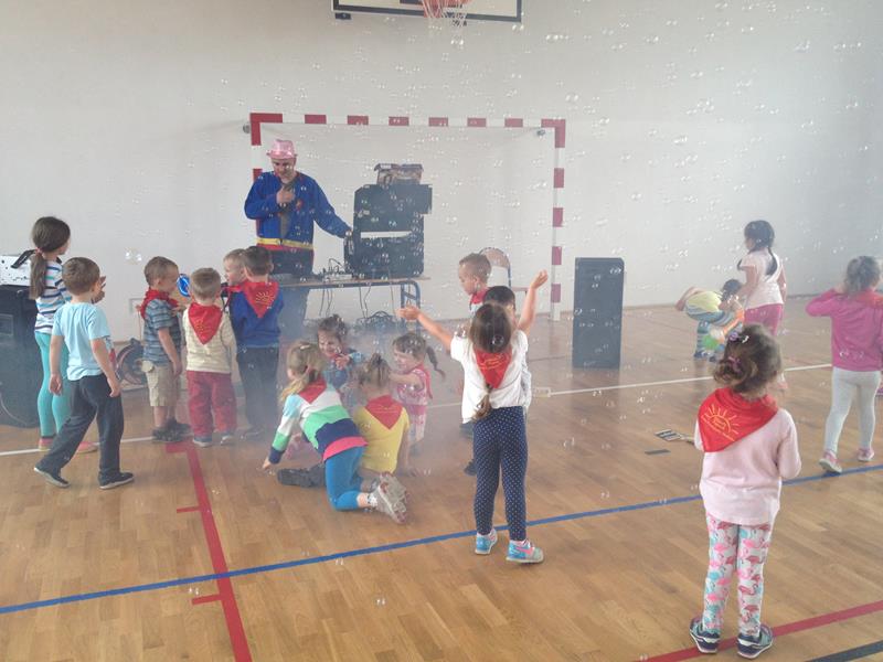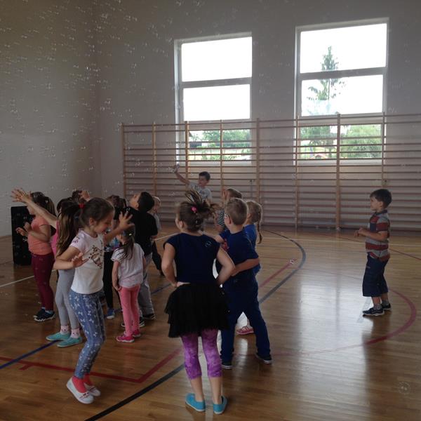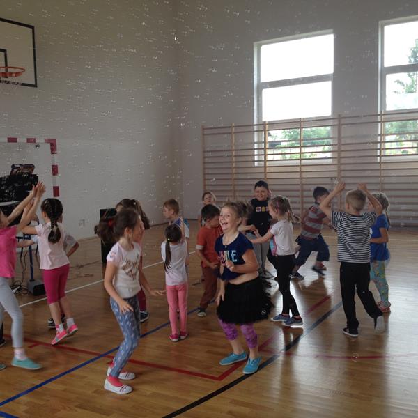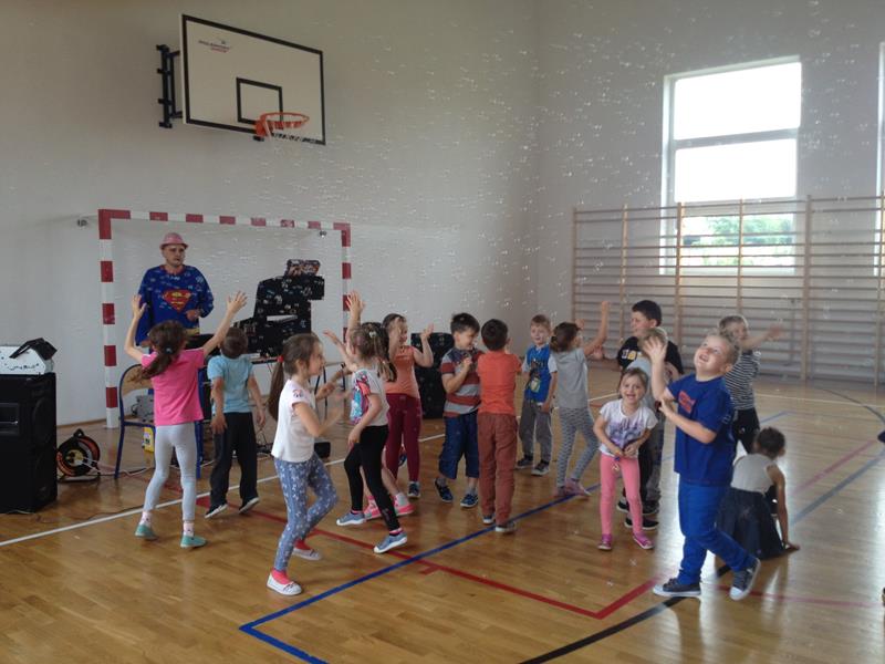 Na sali gimnastycznej przy odpowiednim nagłośnieniu odbywały się tańce, gdzie DJ w stroju klauna cały czas zachęcał dzieci do zabawy. Nad roztańczonymi uczniami pojawiły się bańki mydlane. W tym dniu uczniowie z bliska zobaczyli jak wygląda kuglarstwo, czyli modelowanie balonów. Zostali również przeszkoleni w tym zakresie i samodzielnie mogli spróbować skręcać balony. Na zewnątrz budynku szkoły odbywał się pokaz dużych baniek mydlanych. Tam również uczniowie mogli spróbować swoich sił. Największą atrakcją piątkowej imprezy w Szkole Podstawowej w Siedlance była foto budka, o czym świadczyły najdłuższe kolejki. Dzieci chętnie przybierały postać kapitana, policjanta, zakładały zabawne okulary oraz wiele innych śmiesznych rekwizytów. Po czym robiły dziwne miny i z zapałem pozowały do zdjęć. Pamiątkę z foto budki w postaci czterech miniaturowych zdjęć zabrały ze sobą do domu.