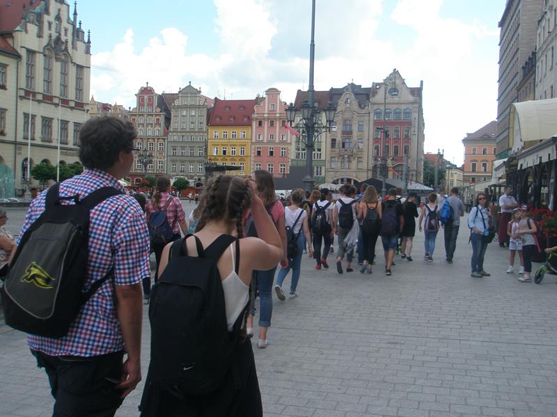 Część uczniów klas III-ich Gimnazjum Publicznego w Niwiskach podążyła chyba w tym roku tokiem myślenia Pchły Szachrajki, bo na wycieczkę udali się do Wrocławia (dodatkowo zwiedzali ciekawe miejsca i zabytki Ziemi Kłodzkiej). Trzydniowa eskapada była bardzo urozmaicona – pierwszy dzień spędzono na wrocławskim Rynku, gdzie podziwiano piękne kamieniczki oraz spacerowano po Ostrowiu Tumskim zapoznając się z burzliwa historią miasta i jego poszczególnych miejsc. W drugi dzień zachwycano się pięknem Ziemi Kłodzkiej – „błądzono” po labiryntach w Błędnych Skałach, obejrzano Kaplicę Czaszek w Czermnej (która wywarła na uczniach duże wrażenie), zwiedzono Twierdzę Kłodzką (niezapomnianych emocji dostarczył marsz po podziemnych korytarzach minerów, gdzie chwilami trzeba było przeciskać się prawie na czworakach i w ciemnościach!). Ostatni dzień poświęcono oglądaniu Hali Stulecia (w której m. in. wygłaszał swoje przemówienia Hitler) – na pięknych terenach otaczających Halę znajduje się ogromna fontanna multimedialna. Wycieczkę zakończono kilkugodzinnym pobytem we wrocławskim ZOO, w którym oprócz oglądania i podziwiania różnych gatunków zwierząt, ptaków można spacerować po Afrykarium – kompleksie 19 basenów i zbiorników wodnych przedstawiających m.in. rafę koralową Morza Czerwonego, hipopotamy nilowe, ryby słodkowodne jezior Malawi i Tanganiki. Głębiny Kanału Mozambickiego, gdzie występują rekiny, płaszczki i inne duże ryby pelagiczne można podziwiać z podwodnego, akrylowego tunelu o długości 18 m ( niesamowitych wrażeń dostarczają przepływające nad głową zwiedzających ryby!). Po zjedzeniu smacznego obiadu udano się w podróż powrotną. Uczniom na pewno zostanie mnóstwo zdjęć, wrażeń i wspomnień (niekoniecznie w tej kolejności). Szkoda, że wycieczki tak szybko się kończą!