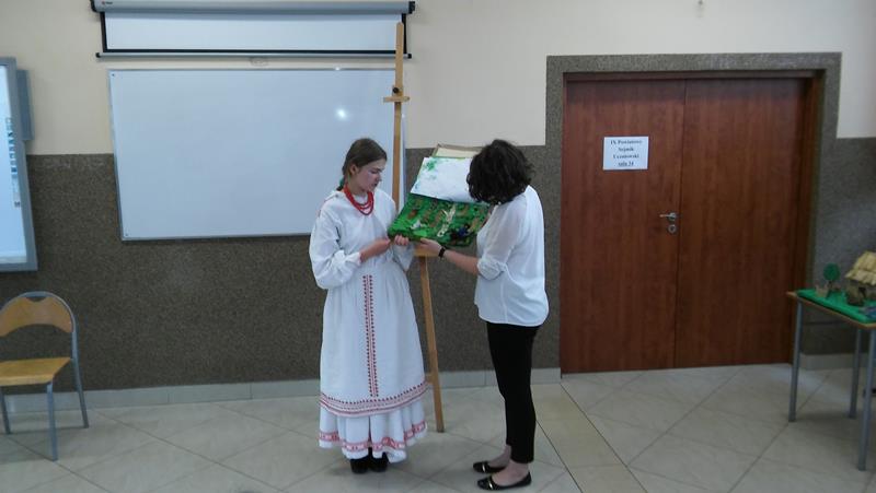 W konkursie wzięły udział dwie uczennice naszego Gimnazjum – Anita Wolan i Wioleta Gancarczyk (obydwie z kl. I a). Obie przygotowały do swoich prezentacji prace plastyczne. Anita ( w rytm podkładu muzycznego) opowiedziała „Legendę o Azalii”, a Wioleta (akompaniując sobie na gitarze)