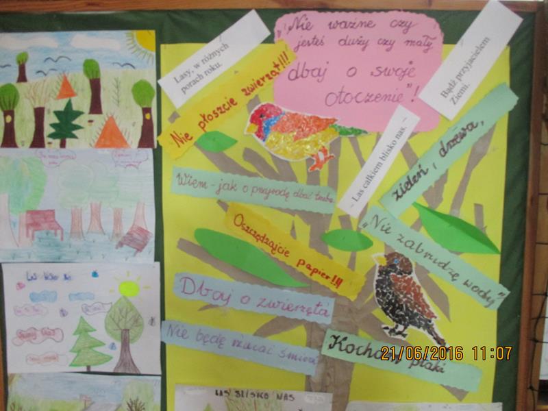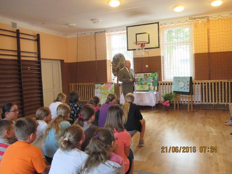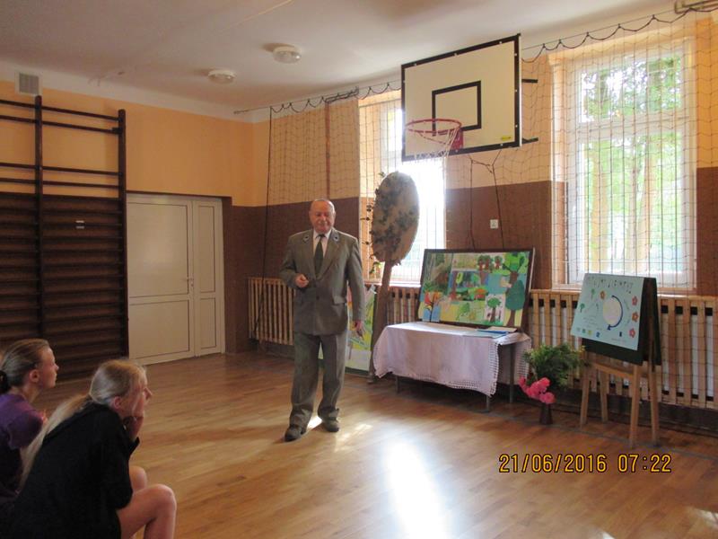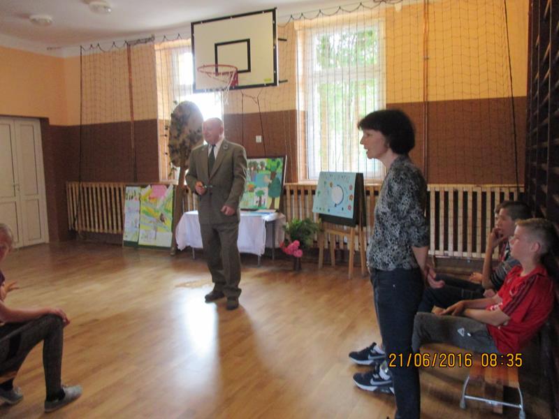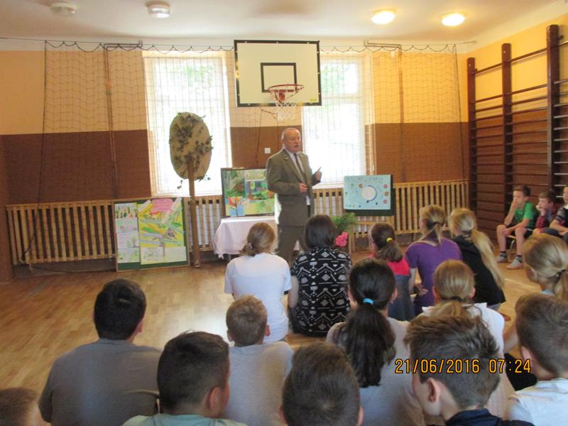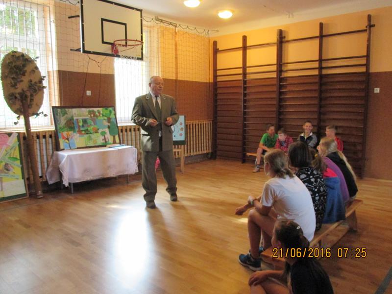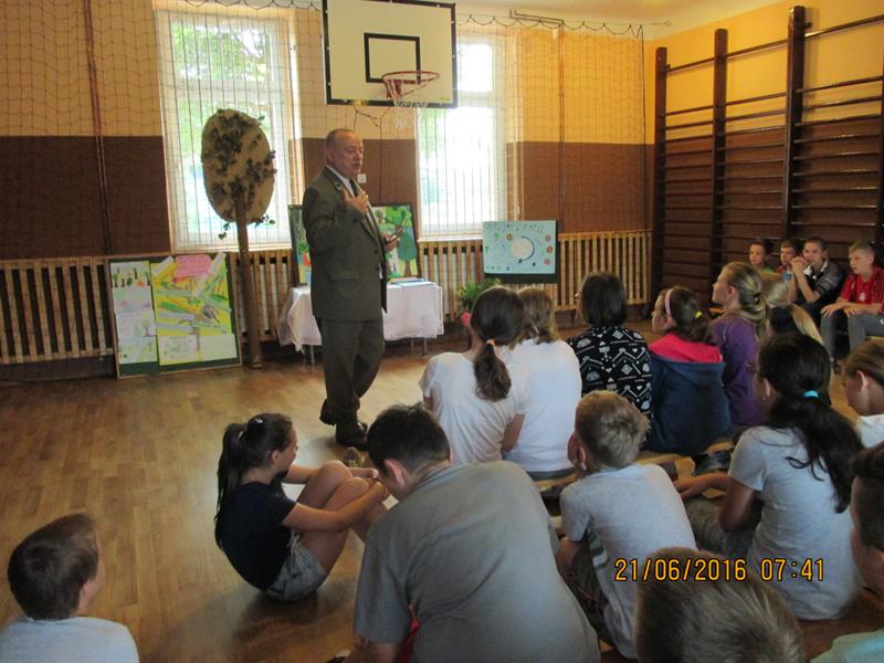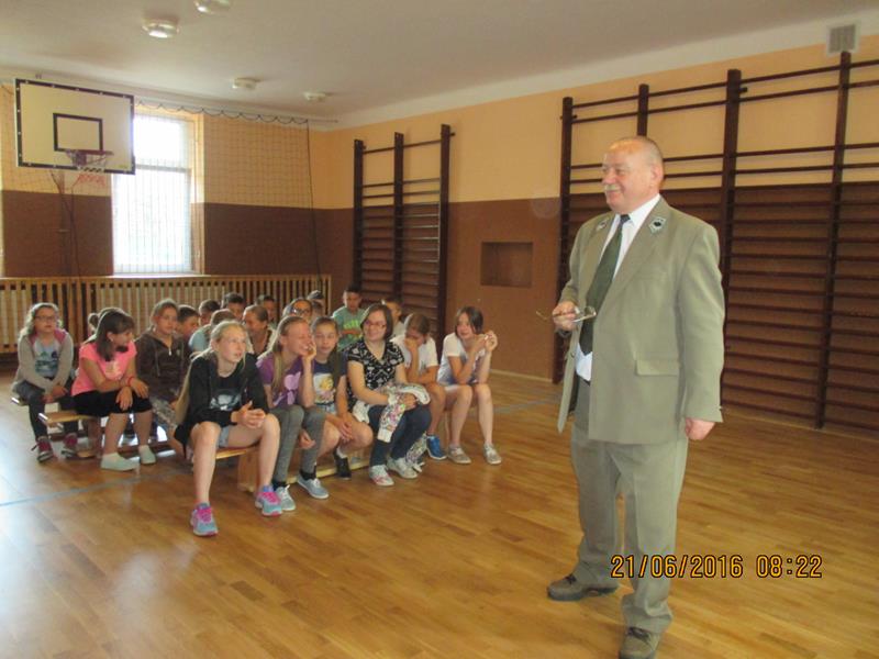 21 czerwca 2016 roku w naszej szkole odbyło się spotkanie uczniów klas IV-VI z leśniczym Panem Jerzy Kurzawa z Nadleśnictwa Tuszyma w ramach edukacji przyrodniczej. Pan leśniczy przedstawił uczniom pracę leśnika oraz przybliżył wiedzę o polskich lasach. Głównym celem tej pogadanki było poznawanie środowiska przyrodniczego, budzenie zainteresowania i szacunku dla otaczającej przyrody oraz pracy leśnika, wychowanie do życia w harmonii z przyrodą, uświadomienie wpływu lasu na każdego z nas, zdobycie wiedzy o zagrożeniach środowiska oraz konieczności zapobiegania i likwidowania zagrożeń.