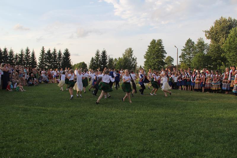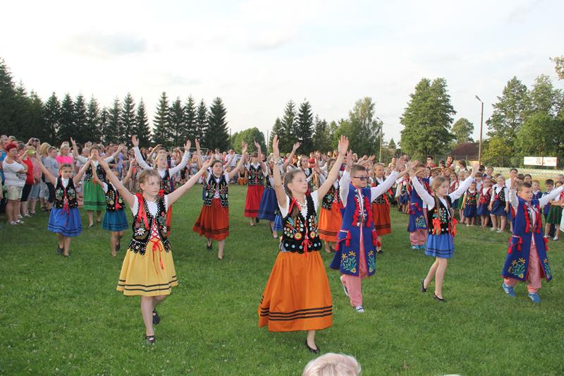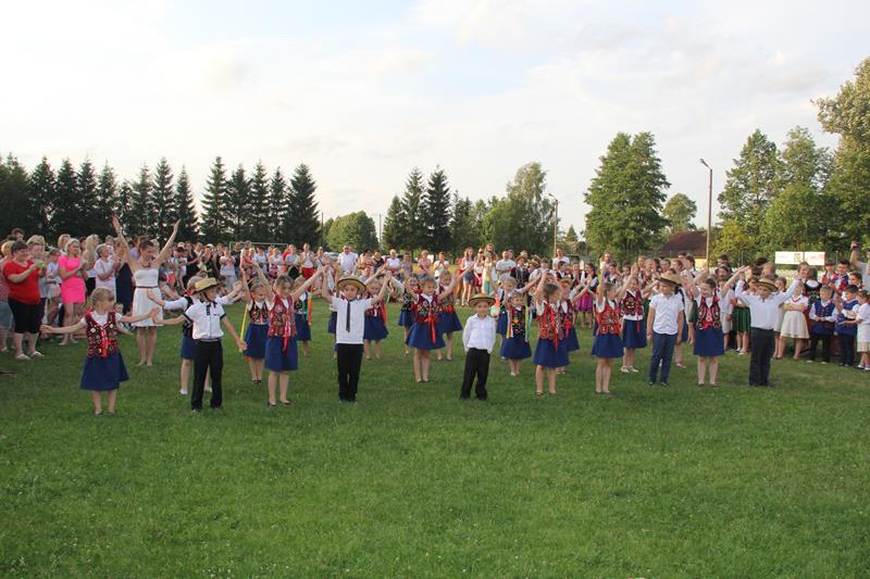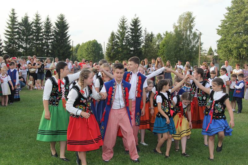 Prawdziwym hitem naszego spotkania okazał się występ zespołów tanecznych kierowanych przez choreograf panią Karolinę Majdan, działających przy GOKiB w Niwiskach oraz filii w Siedlance. Dzieci z całej gminy w pięknych strojach regionalnych zaprezentowały na płycie boiska tradycyjne tańce ludowe, które znakomicie korespondowały z tradycją pląsów przy ogniskach sobótkowych. Premierowy występ dzieci wzbudził wielkie emocje, szczególnie, że zakończył się pięknym polonezem tańczonym przez wszystkie grupy jednocześnie.