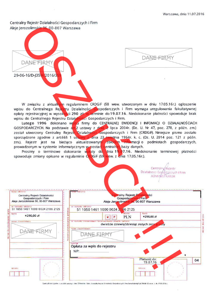 Przedsiębiorstwo nie płać! To jawne wprowadzanie w błąd( przykład pisma w załączeniu)