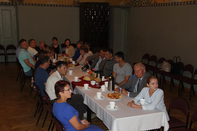 W Gminnym Ośrodku Kultury i Biblioteki w Niwiskach 14 osobowa delegacja z Ukrainy z Starostą kolbuszowskim Józefem Kardysiem spotkała się z wójtem gminy – Elżbietą Wróbel i skarbnikiem gminy – Jolantą Łagowską, kierownikami jednostek organizacyjnych: Dyrektor GOKiB –Małgorzatą Tetlak, Dyrektor SzMIst. – Dorotą Wilk, Kierownikiem GOPS- Barbarą Czachor.