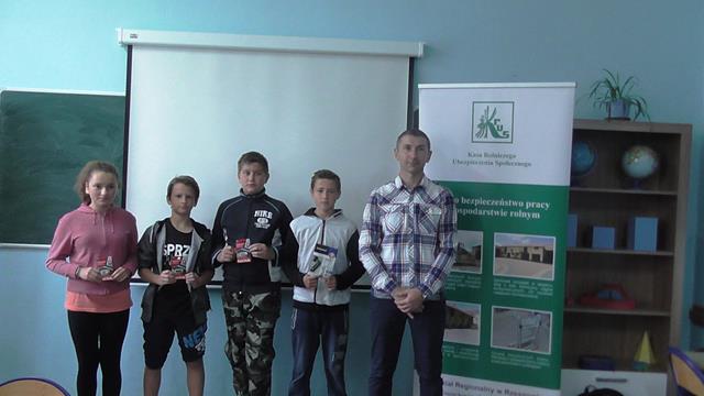 W trakcie szkolenia uczniowie dowiedzieli się jakich prac nie mogą wykonywać przed ukończeniem 16 roku życia. Zaprezentowano im również film animowany pt. ,,Rodzina Porażków ". Klasy IV-VI uczestniczyły również w konkursie z cennymi nagrodami, rozwiązując krzyżówkę BHP dla dzieci. Zwycięzcą konkursu został uczeń klasy VI Oliwier Saj.