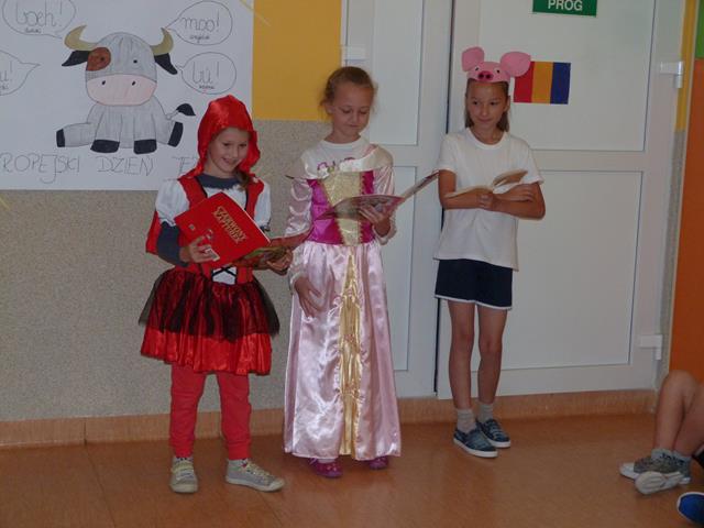 Kolejnym punktem programu było czytanie baśni i bajek przez samych bohaterów tych opowiadań. W świat Kopciuszka zabrała nas Tosia z drugiej klasy, w Czerwonego Kapturka wcieliła się Lara, również z drugiej klasy, a historię snu Prosiaczka z opowiadań o Kubusiu Puchatku przeczytała nam Gabrysia z czwartej klasy.