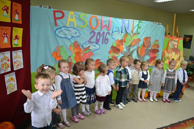 Minął już wrzesień, dzieci zdążyły się przyzwyczaić do przedszkola. Przyszedł więc czas na pasowanie przedszkolaków. 4 października przed panią dyrektor Krystyną Piątkowską oraz rodzicami maluszki zaprezentowały przygotowane wcześniej wierszyki i piosenki. Podczas występu rodzice każde dziecko z osobna nagradzali brawami, z dumą i uśmiechem na twarzach robili sowim pociechom zdjęcia. Panie przygotowały również krótkie pytania sprawdzające wiadomości dzieci, a także samych rodziców.
