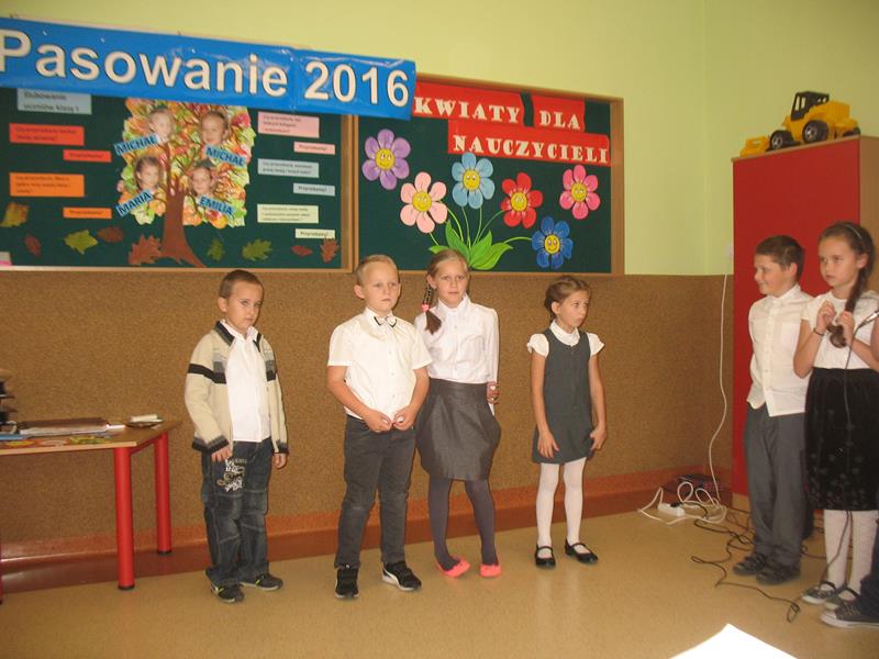 W dniu uroczystej akademii z okazji Dnia Edukacji Narodowej, tj. 13.10.2016r do grona uczniów SP w Kosowach uroczyście przyjętych zostało czworo uczniów . Pasowanie okazało się dla dzieci głębokim przeżyciem , ale nie było wcale takie straszne jak się tego obawiały. Młodzi adepci szkoły wcale się nie przestraszyli trudnego egzaminu na ucznia , przyszłej nauki ani też wielkiego ołówka pani Dyrektor . Maria , Emilia , Michał i Michał, to imiona dzieci nowo przyjętych do szkolnej rodziny. Stali się oni pełnoprawnymi uczniami SP w Kosowach . By zostać pasowanymi na ucznia klasy I nie wystarczyło jednak przyjść na akademię pięknie ubranym. Uczniowie musieli zdać nietypowy egzamin pięknie recytując wiersze, ze śpiewem i tańcem wejść w progi szkoły oraz rozwiązać szkolne zagadki i zjeść po kawałku kwaśniej cytryny z uśmiechem na ustach. W ten sposób udowodnili starszym uczniom , nauczycielom i rodzicom, że posiadają umiejętności i cechy prawdziwych „ żaków kosowskiej akademii ” i zdali ten egzamin na szóstkę zarówno z zachowania jak i z wiedzy polonistycznej , środowiskowej , matematycznej oraz patriotycznej . Otrzymali wykonane ręcznie medale , wzorowych uczniów i dobrych patriotów oraz pamiątkowe dyplomy. Uczniowie klasy I następnie złożyli ślubowanie na sztandar i zostali uroczyście pasowani na uczniów. Po zakończeniu akademii otrzymali jeszcze upominki od pani Dyrektor ,wychowawcy klasy i rodziców, którzy przygotowali dla swoich pociech wspaniałe przyjęcie.
