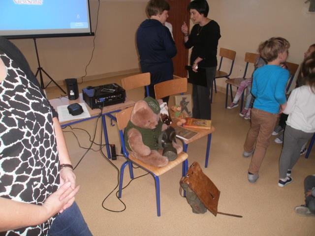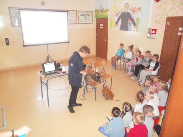 Kapral Wojtek- niedźwiedź i przyjaciel żołnierzy polskich. Lekcja czytelnicza w SP Trześń.