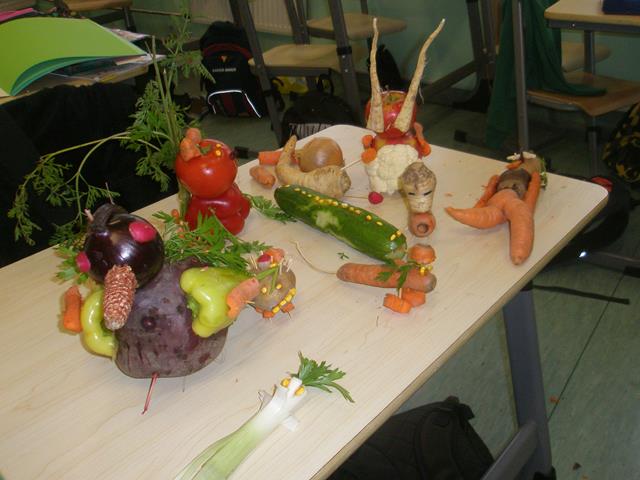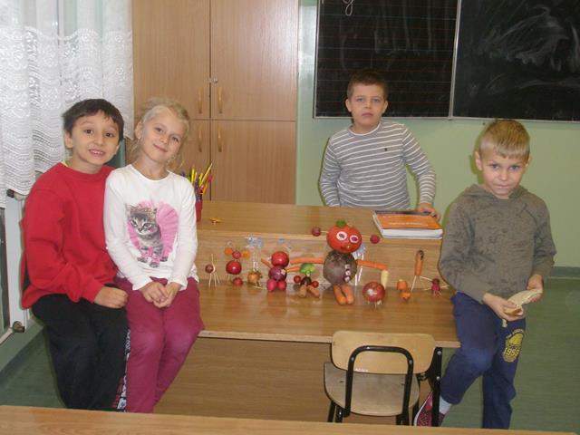 21 października po raz kolejny w Szkole Podstawowej w Niwiskach obchodzono Dzień Pieczonego Ziemniaka. Niestety w tym roku aura nie dopisała…ale dopisały za to humory wszystkim uczestnikom imprezy! Młodsi i starsi uczniowie na zmianę korzystali z sali gimnastycznej, na której bawili się i grali w różne gry i zabawy ruchowe. Urządzono między innymi rozgrywki międzyklasowe w piłkę siatkową (to starsi), rywalizowano w sztafetach na torach przeszkód (to młodsi). Uczniowie wszystkich klas brali udział w konkursie na najładniejszego i najciekawiej skonstruowanego ludzika/stworka/zwierzątko wykonane z warzyw, owoców i innych darów natury. Powstały bardzo ładne i interesujące kompozycyjnie prace. Rodzice zadbali o to, aby upieczony w ognisku Pan Ziemniak trafił w przepastne czeluści brzuchów ich pociech. Nie obyło się bez wzajemnego „malowania” się zwęglonymi skórkami ziemniaków! A co było przy tym radości i śmiechu! Na koniec uczniowie otrzymali pamiątkowe dyplomy oraz słodkie nagrody ufundowane przez rodziców za swoje artystyczne dzieła. W przygotowanie imprezy zaangażowani byli rodzice oraz nauczyciele i pracownicy szkoły. Pomimo, że dzień był zimny, pochmurny to impreza była bardzo udana – Pan Ziemniak chyba był zadowolony z obchodów swojego dnia!
