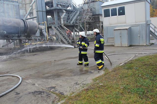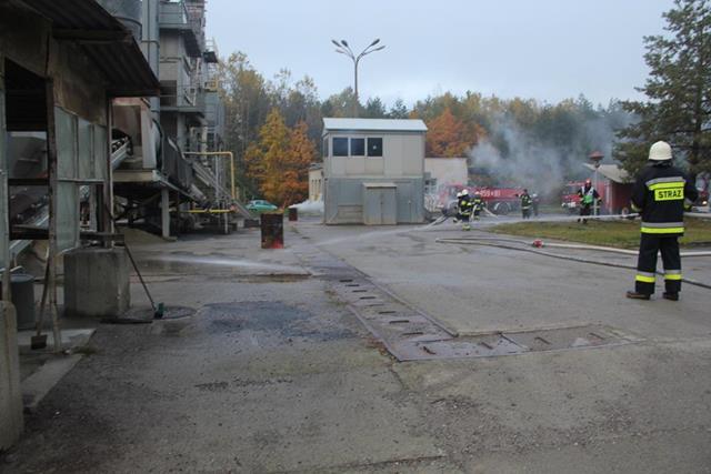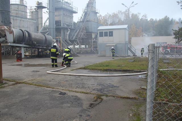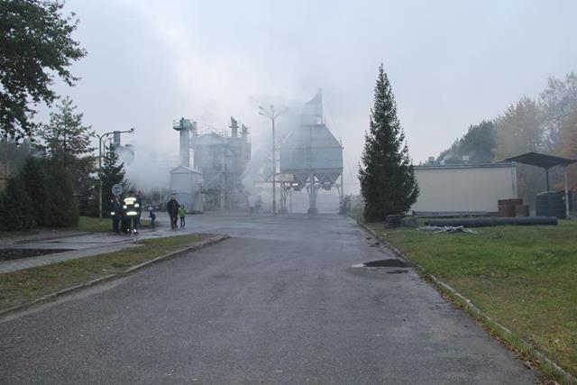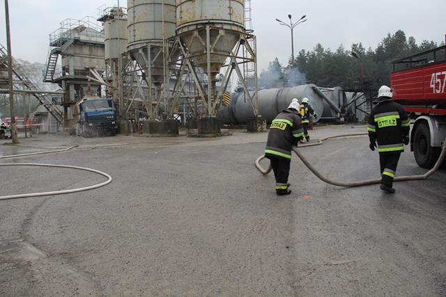 W trakcie procesu wytwarzania masy bitumicznej dochodzi do awarii pieca ogrzewającego masę asfaltową a w konsekwencji do wybuchu i zapalenia się taśmociągów a także masy asfaltowej w jednym ze zbiorników oraz do jego rozszczelnienia. Zagrożonych jest 10 zbiorników z gazem propan – butan o łącznej objętości 64 m