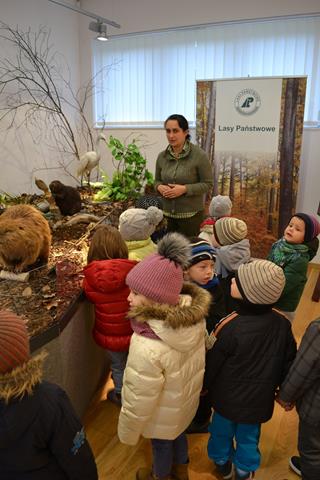 27 października br. przedszkolaki z „Wesołego Promyka” odwiedziły Nadleśnictwo Kolbuszowa w Świerczowie. Na miejscu obejrzały wystawę wypchanych zwierząt leśnych oraz miały okazję wysłuchania ich odgłosów. Następnie wszystkie przedszkolaki otrzymały karty pracy oraz drobne upominki. W sali edukacyjnej dzieci obejrzały bajkę ukazującą życie zwierząt w lesie oraz pracę leśniczego. Na zewnątrz dzieci miały okazję oglądnąć budki lęgowe ptaków oraz przekroje niektórych drzew liściastych i iglastych. Następnym punktem wycieczki był grill, który przygotowali rodzice. Ku zaskoczeniu przedszkolaków to nie był koniec naszej wycieczki. W tym dniu odwiedziliśmy również zwierzęta na ścieżce edukacyjnej „Świerczówka”. Na miejscu przedszkolaki bardzo chętnie karmiły ogromne strusie, a także bacznie przyglądały się danielom. Około godziny 12.00 zmęczone, ale zadowolone dzieci wróciły do przedszkola, gdzie czekał już na nich ciepły obiad.